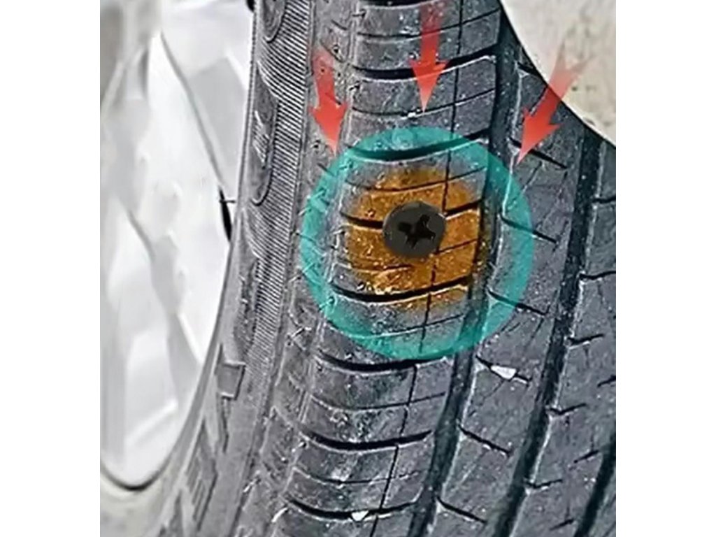 - Extrémně snadné použití - stačí zašroubovat šroub v místě poškození pneumatiky.