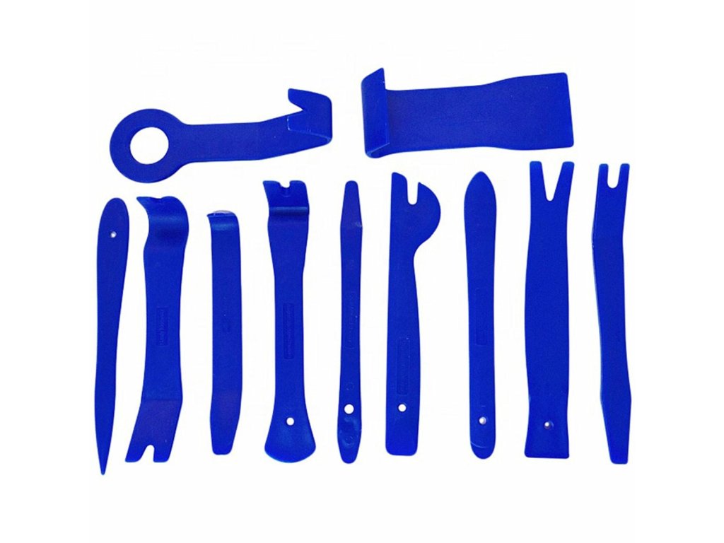 11dílná sada nářadí pro bezpečnou demontáž autočalounění. Špičková kvalita! Naše stahováky jsou vyrobeny z pevného a odolného plastu, který umožňuje bezpečné a rychlé odstranění čalounění. V porovnání s levnými a nekvalitními stahováky nabízenými konkurencí. Při prvním pokusu o použití konkurenčních stahováků se nástroj zlomil a plast se zasekl na těžko přístupných místech.