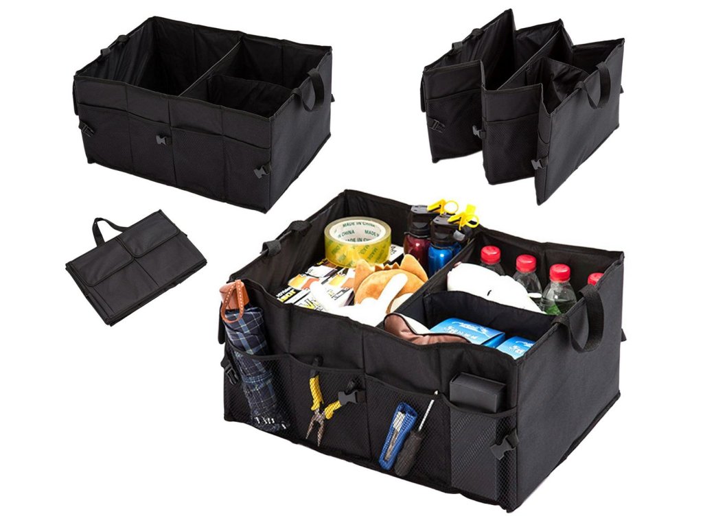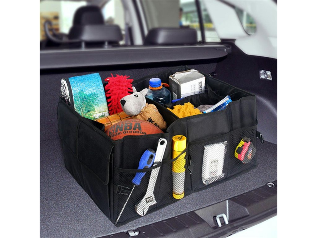 - Díky tomuto organizéru budete mít všechny potřebné věci po ruce a nerozházené v nepořádku po celém autě. Důležité je, že v případě prudkého brzdění zůstanou všechny předměty umístěné v organizéru na svém místě. Dá se umístit do kufru nebo na zadní sedadla auta.