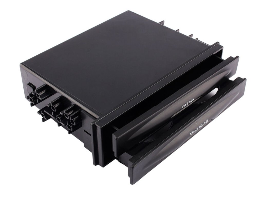 - Držák nápojů do auta namontovaný do standardní 1 DIN zásuvky.