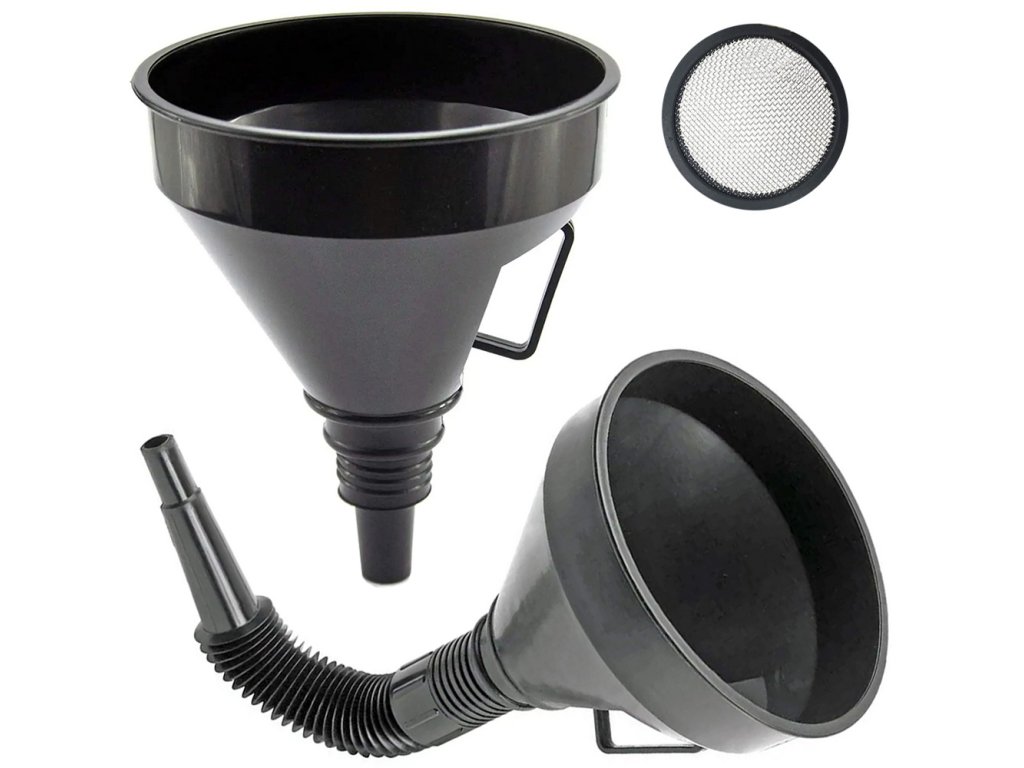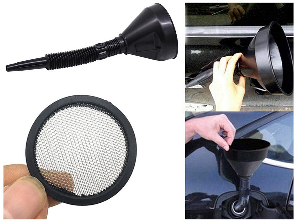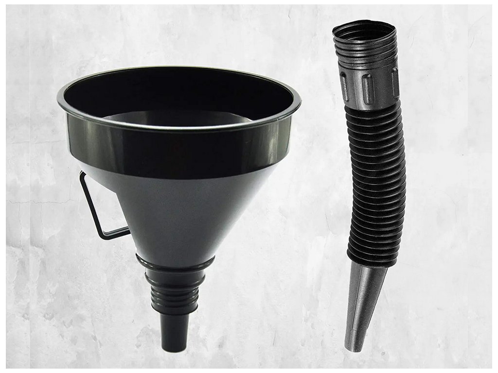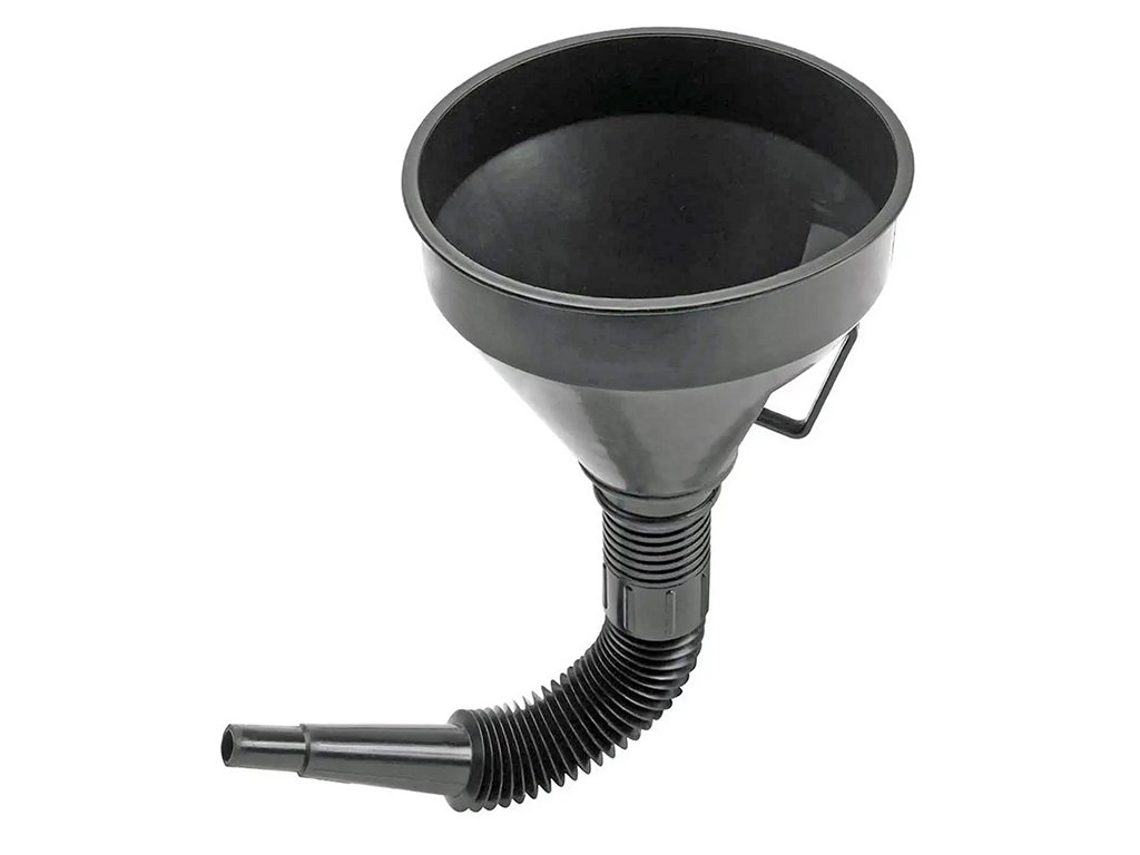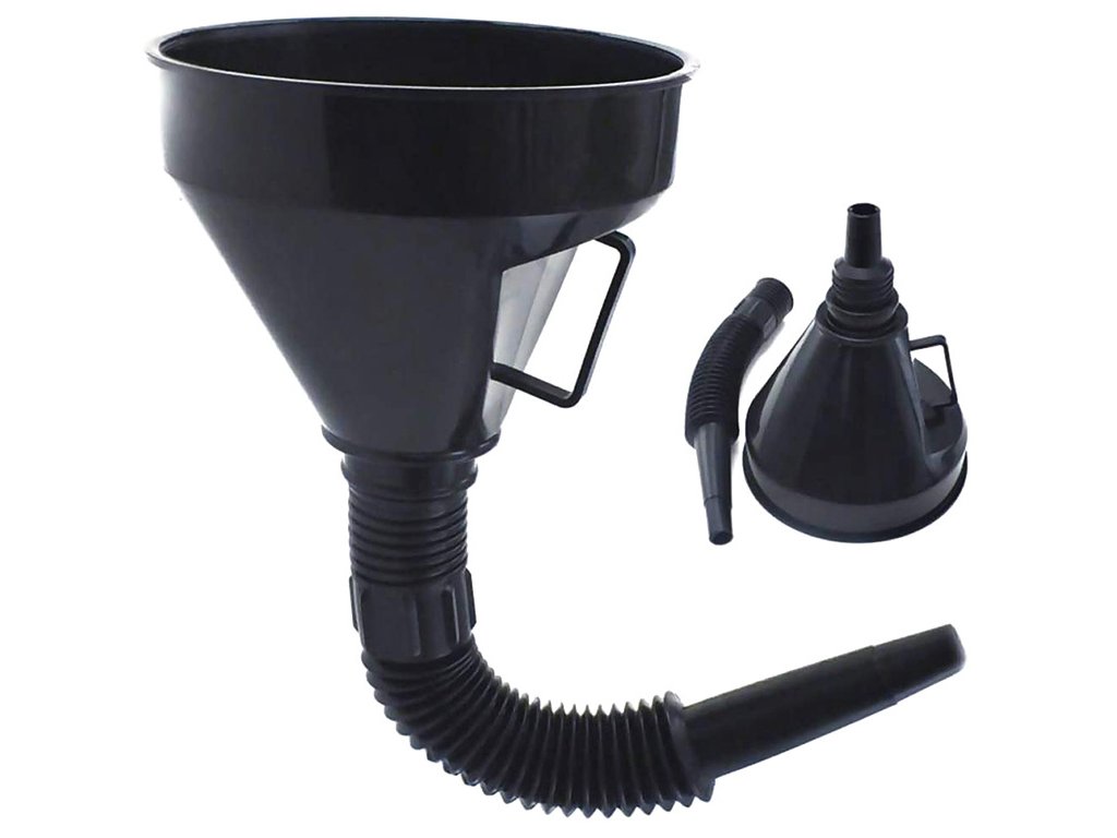 Nálevka je vyrobena z materiálů odolných vůči škodlivým chemikáliím. Trychtýř je rozebíratelný na dvě části. Lze jej používat samostatně nebo s harmonikovým nástavcem, který usnadňuje přesné nalévání kapalin. Nálevka je vybavena jemným sítkem, které zadrží jemné nečistoty, jako je písek, piliny apod.