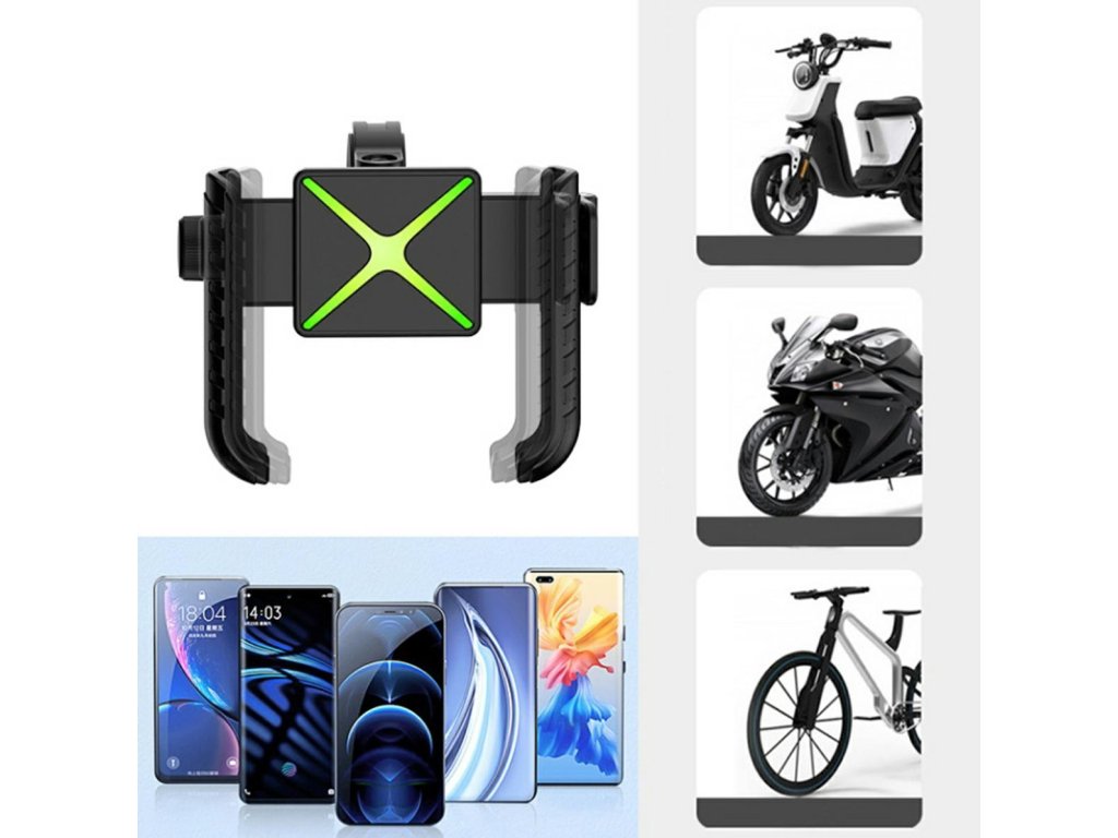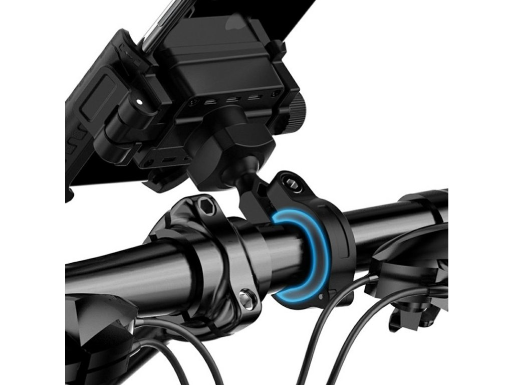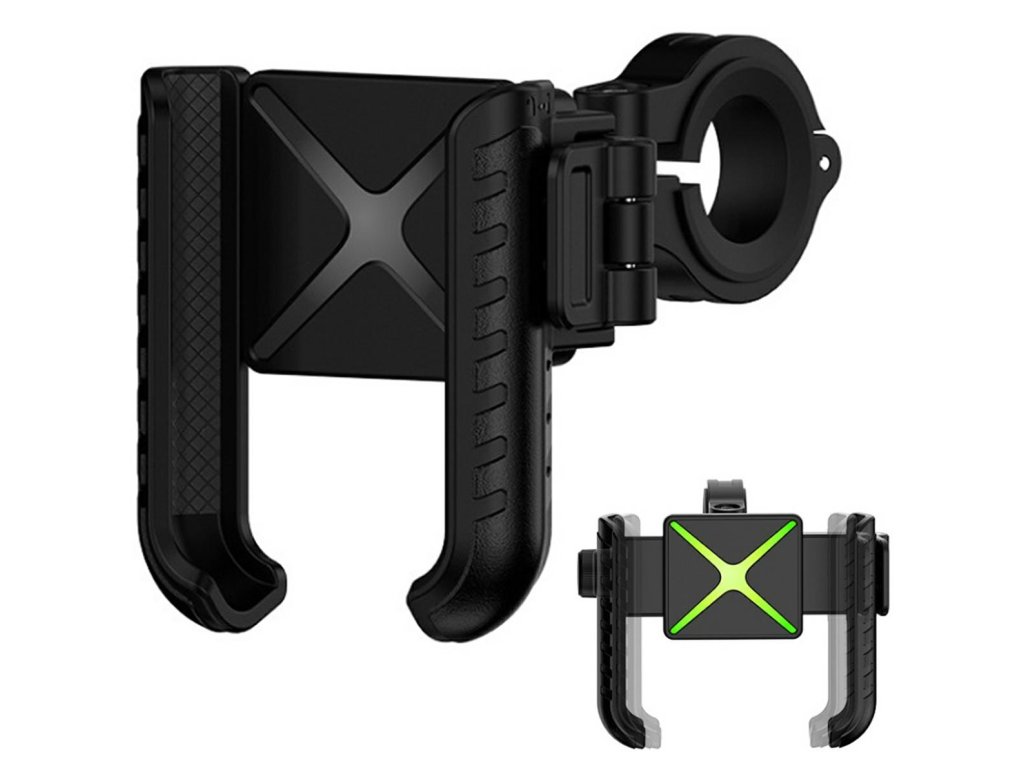 Univerzální držák telefonu na kolo. Vyrobeno z vysoce kvalitního plastu odolného vůči nepříznivým povětrnostním podmínkám. Možnost změny šířky rukojeti, otáčení kolem vlastní osy v 360 stupňové rovině a nastavení sklonu dle potřeb uživatele. Hodí se pro všechny smartphony s úhlopříčkou displeje od 4,5 do 6,7''. Snadná instalace na řídítka kola pomocí držáku se svorkou.