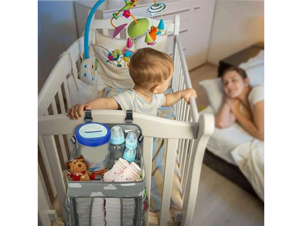 - Funkční organizér do dětské postýlky.