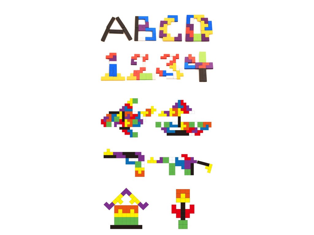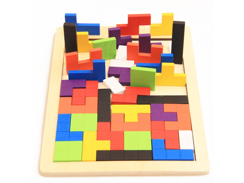Barevné puzzle vyrobené výhradně ze dřeva. Zábava spočívá v uspořádání jednotlivých prvků ve vybraném vzoru tak, aby tvořily souvislý celek. Stimuluje kreativitu a schopnost logicky přemýšlet.
