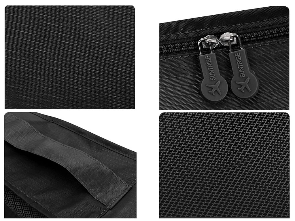 Sáčky jsou dodávány v různých velikostech, takže můžete libovolně třídit všechny věci, které potřebujete na cestu. Tři největší tašky jsou vybaveny oboustranným zipem, síťovanou klopou pro lepší větrání a pohodlnými uchy. Menší sáčky, vyrobené z neprůhledného materiálu se zipem, budou ideální pro uložení prádla a dalších nezbytných pomůcek.