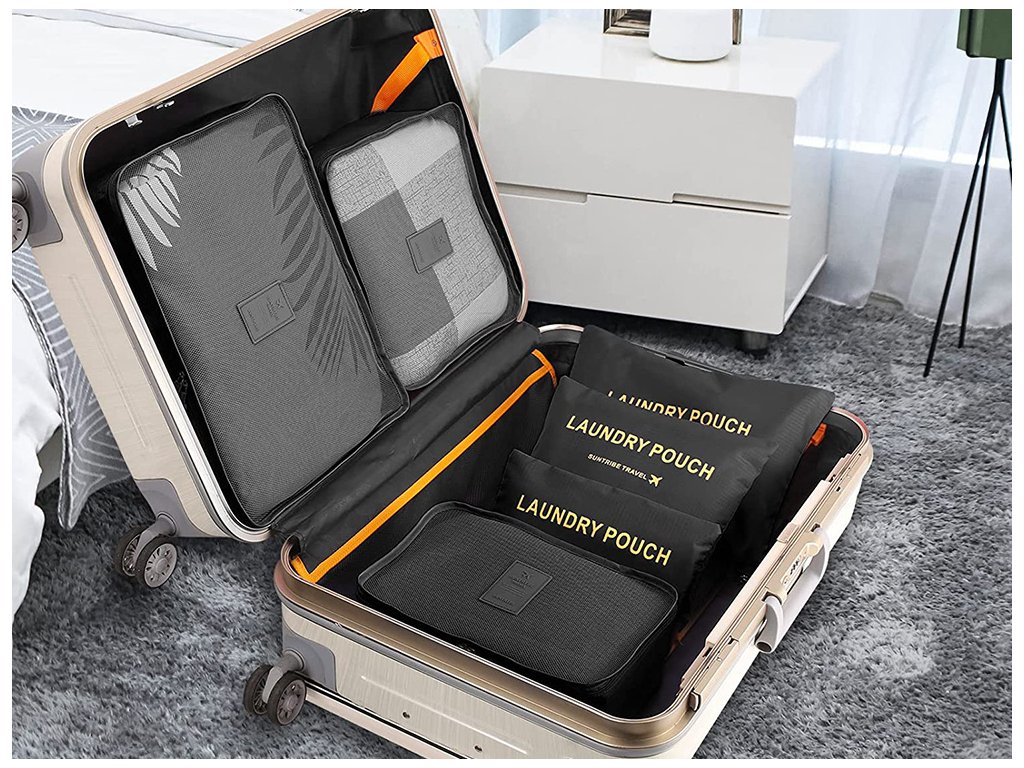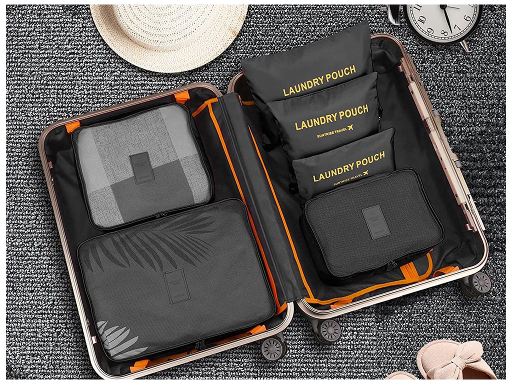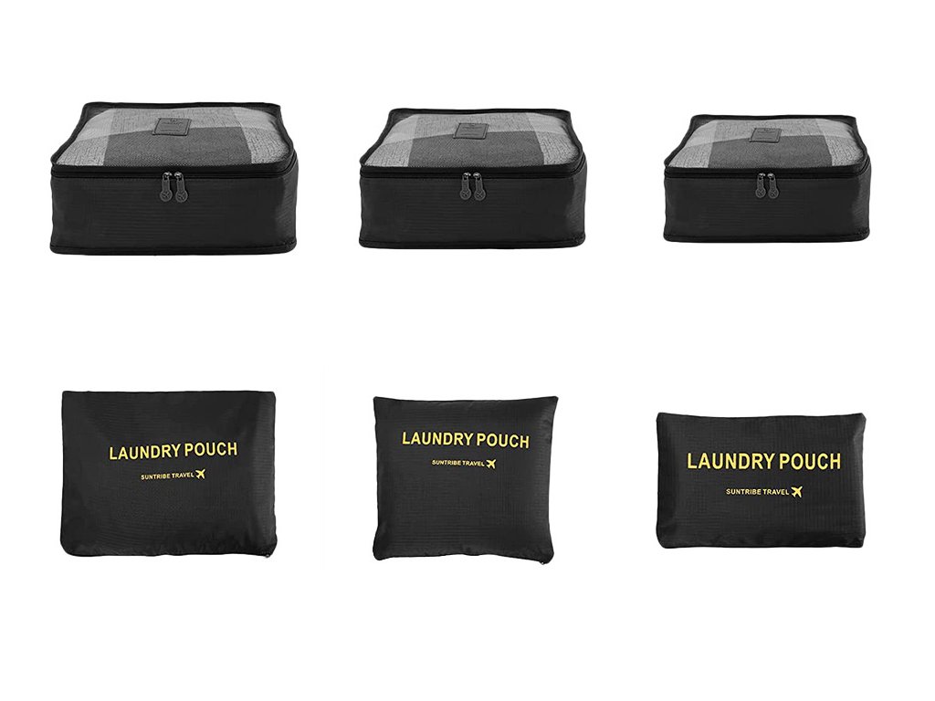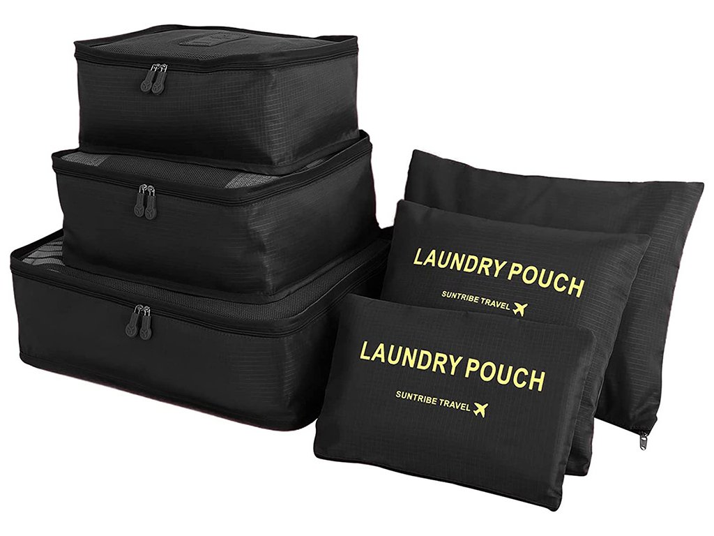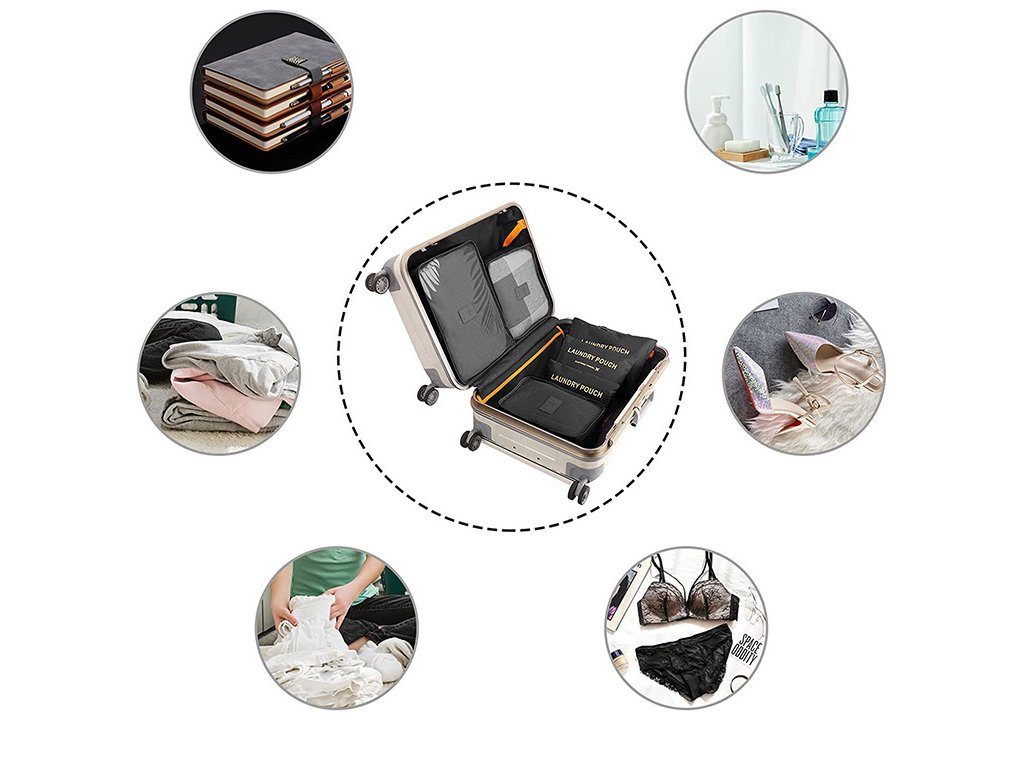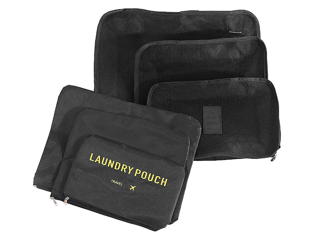 Sada šesti cestovních organizérů, které se skvěle hodí pro zabalení všech potřebných věcí, jako je spodní prádlo, boty, oblečení nebo kosmetika , a pro uložení prádla k vyprání.