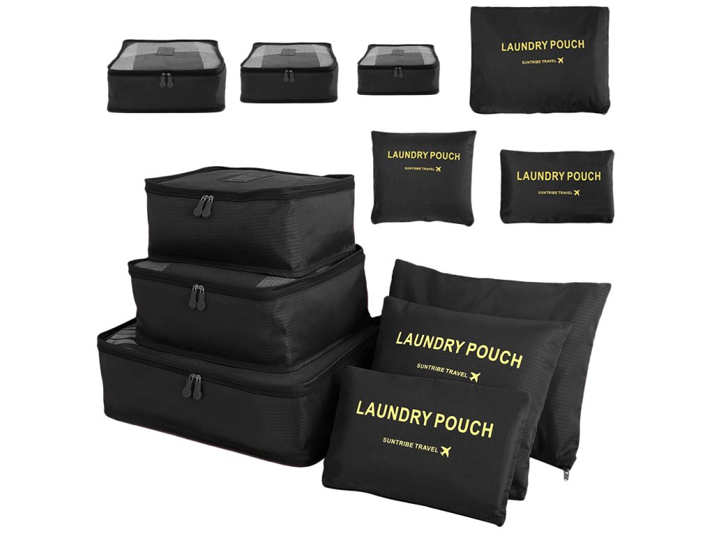 ☑️ Továrně nová sada 6 cestovních organizérů v černé barvě.