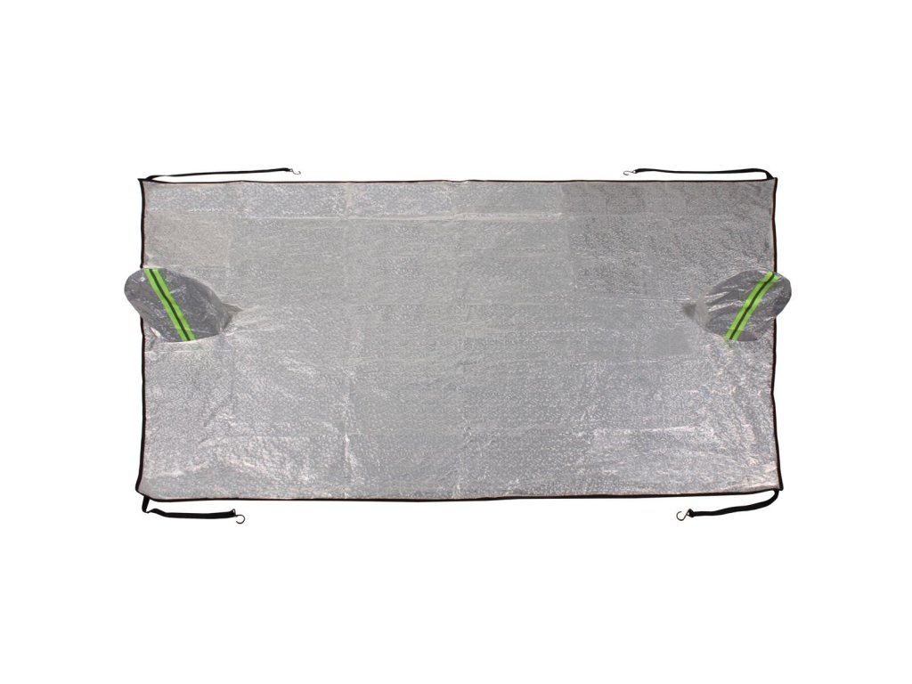 Praktická ochrana čelního skla by měla patřit do běžné výbavy zkušeného motoristy. Clonu Mirror Shade využijete v každém ročním období. V zimě jako ochranu proti námraze, v létě jako ochranu proti UV záření, abyste zabránili přehřívání interiéru auta. Clona s rozměrem 200 x 143 cm je vyrobena z tenké hliníkové fólie, netkané textilie a bavlny. Na auto se přichytí položením na čelní sklo a zajištěním gumovými popruhy s háčky ke dveřím a spodní části vozidla. Díky svému většímu rozměru využijete clonu na různé typy vozidel. U menších aut clona překryje nejen sklo, ale část karoserie. Clona je navíc opatřena návleky na zpětná zrcátka. Parametry: - šířka x výška: 200 x 143 cm - hmotnost: cca 450 g - rozměr návleků na zrcátka 33 x 26 cm, umístění: po stranách uprostřed clony - uchycení: 2 x gumicuk s háčkem o délce 52 cm, 2 x gumicuk s háčkem o délce 35 cm - materiál: hliníková fólie, netkaná textilie, bavlnaDoplňkové parametry