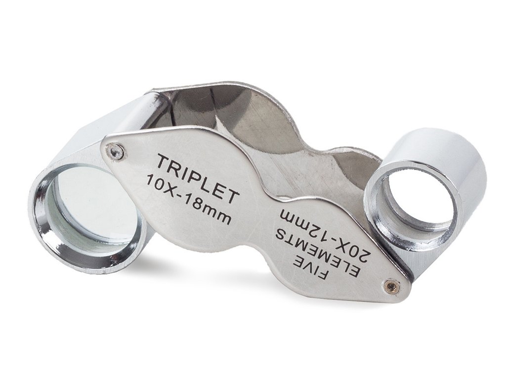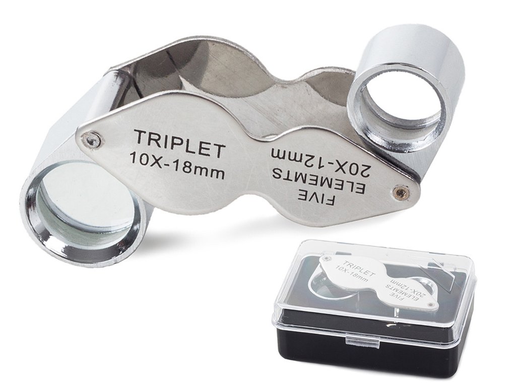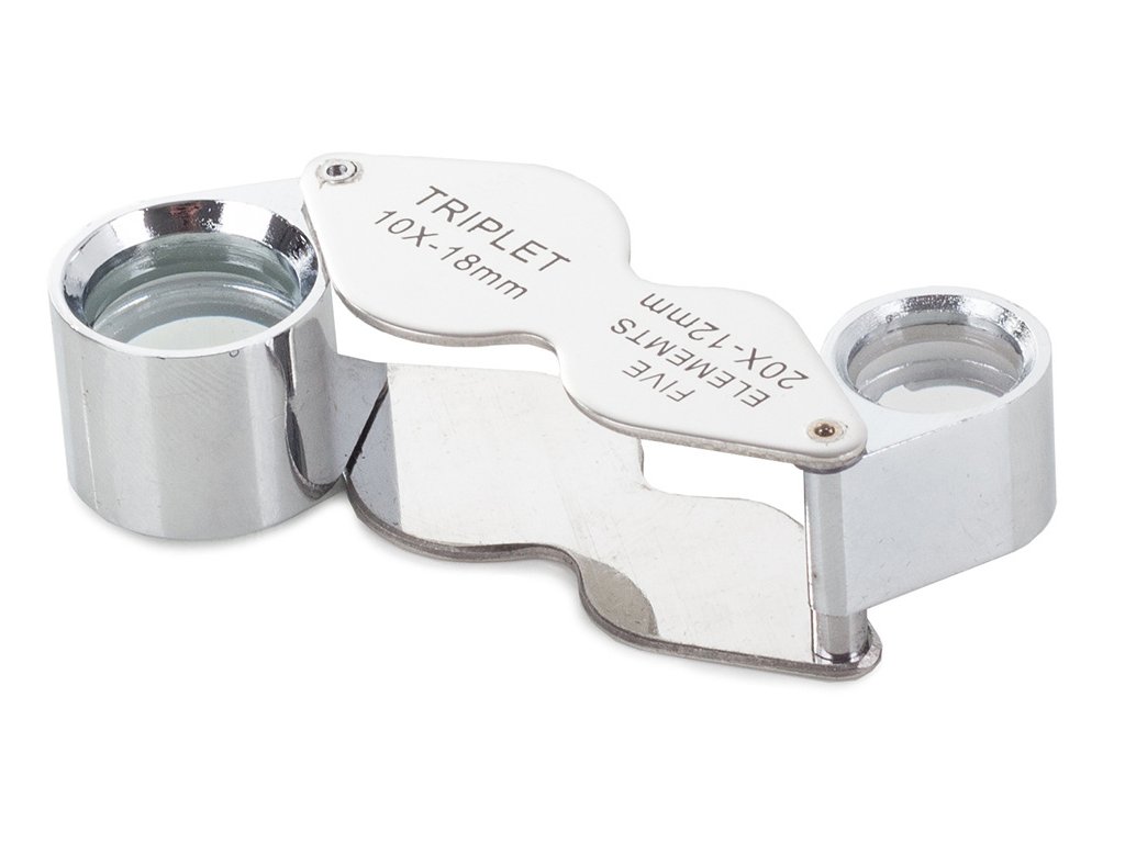 Skládací kapesní lupa 10x 20x ocelová