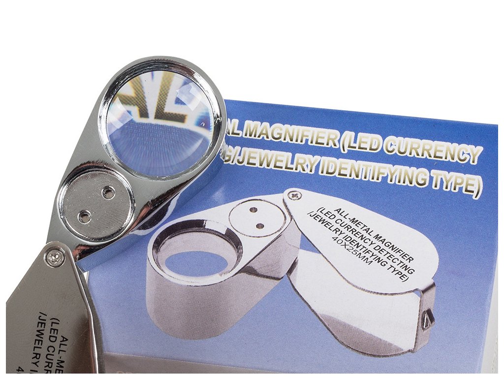 Lupa má navíc zabudovanou UV LED diodu, takže ji lze použít i k rozpoznávání pravosti bankovek.