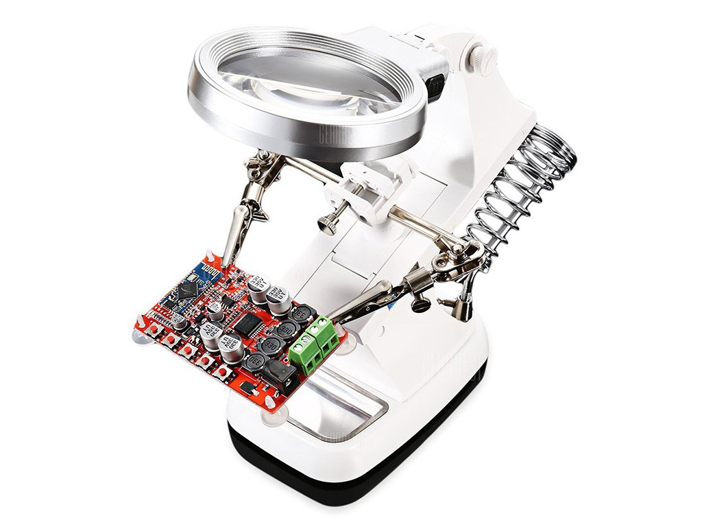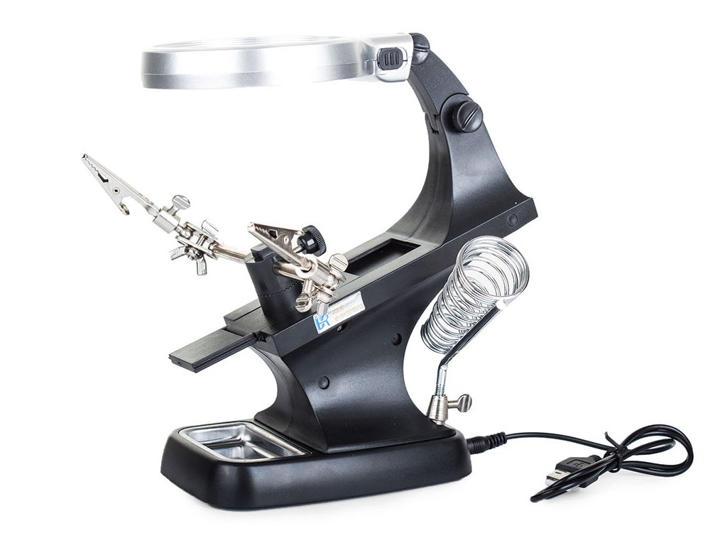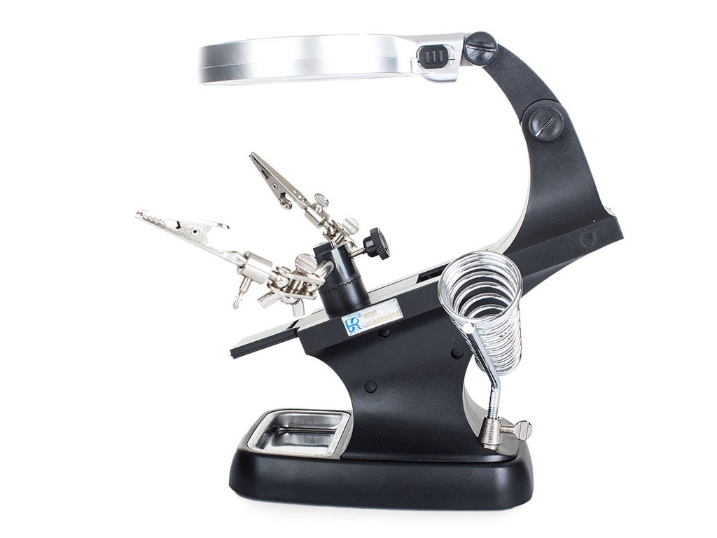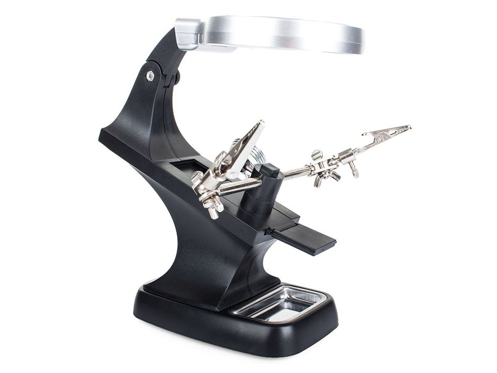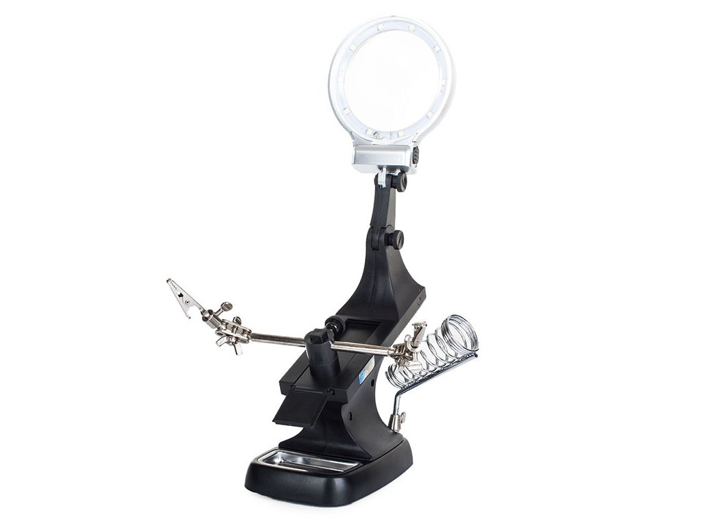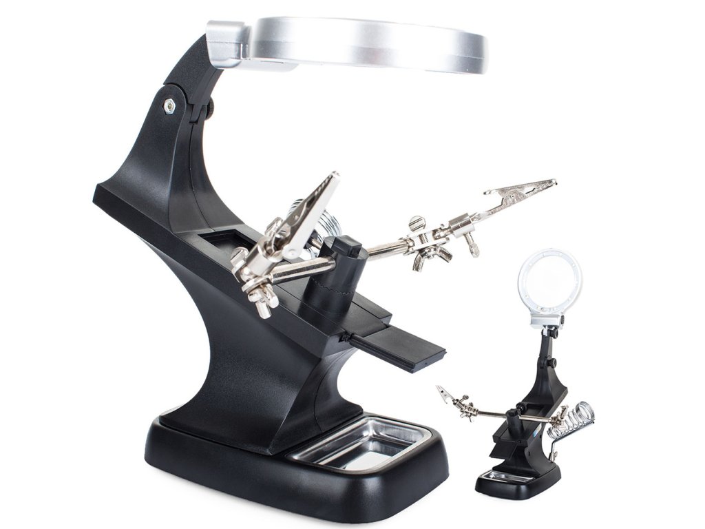 Profesionální třetí ruka s 3x 75mm lupou a 4,5x 20mm lupou je ideálním zařízením pro kutily. Mohou ji používat klenotníci, numismatici, servisní technici elektroniky, hodináři atd.