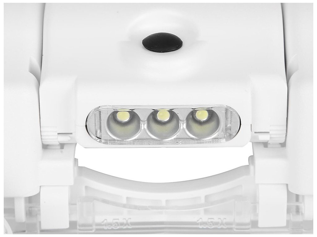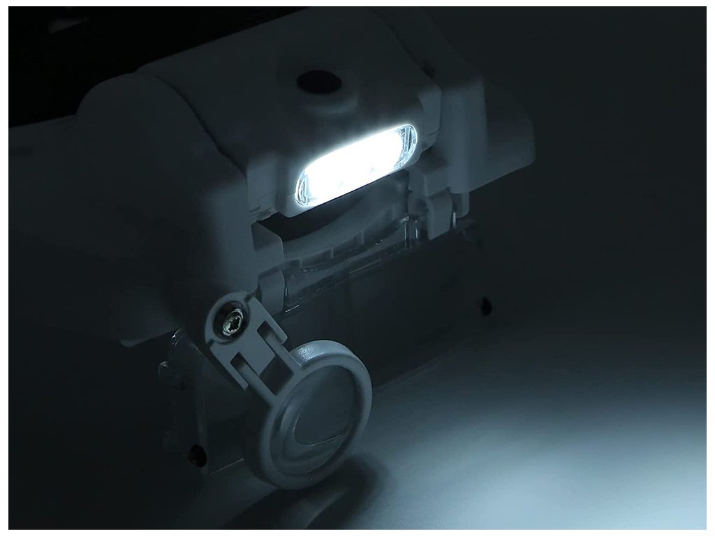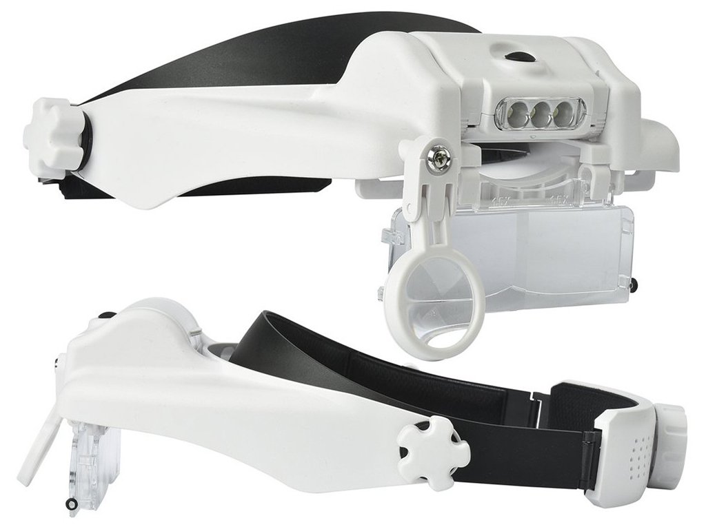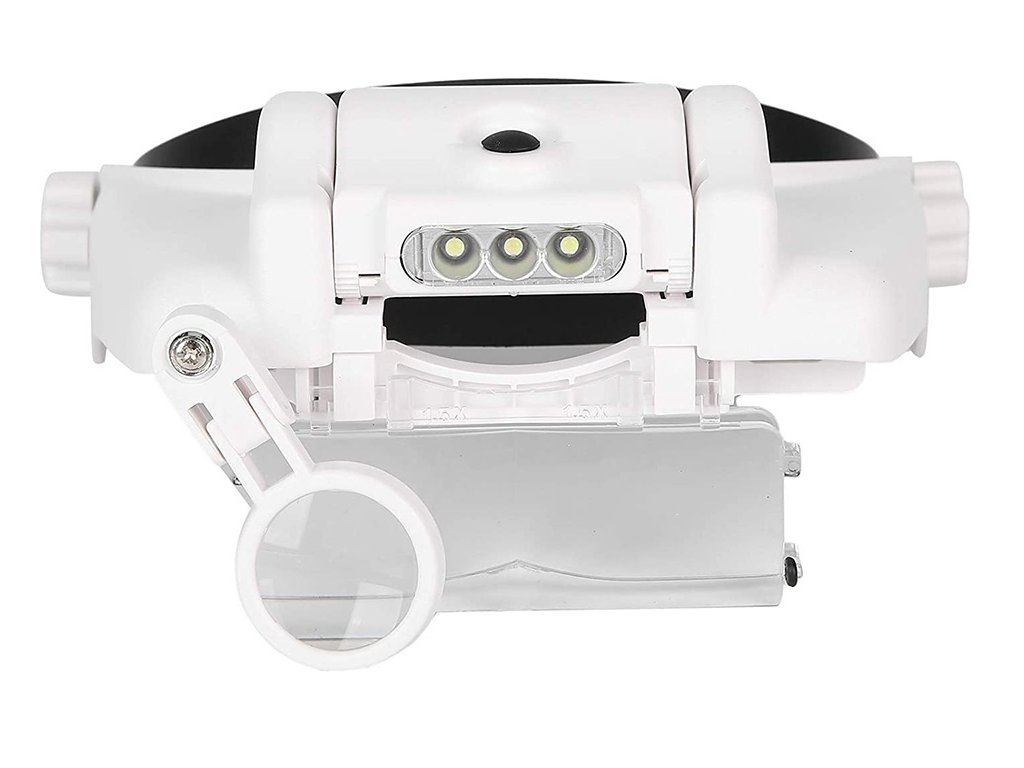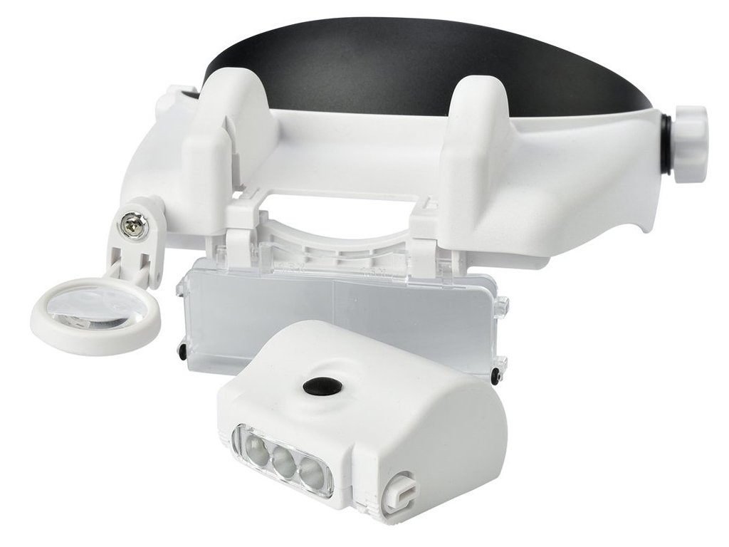 LED diody lze podle potřeby nastavit v úhlu sklonu. Celý mechanismus je založen v podobě hledí na hlavě. Stínítko lze naklápět nahoru nebo dolů. Lupa má univerzální velikost, protože je vybavena popruhem, který je plně nastavitelný pomocí knoflíku. Umožňuje pracovat i při nošení korekčních brýlí.