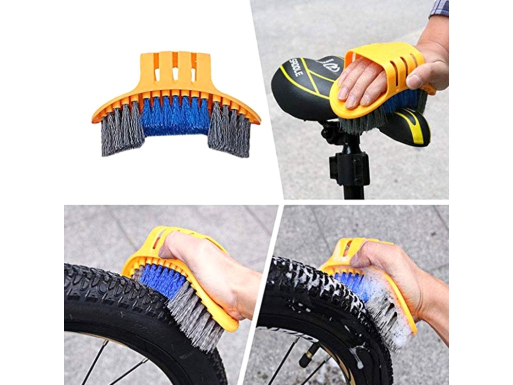 - Velký profilovaný kartáč usnadňuje čištění pneumatik a sedla.