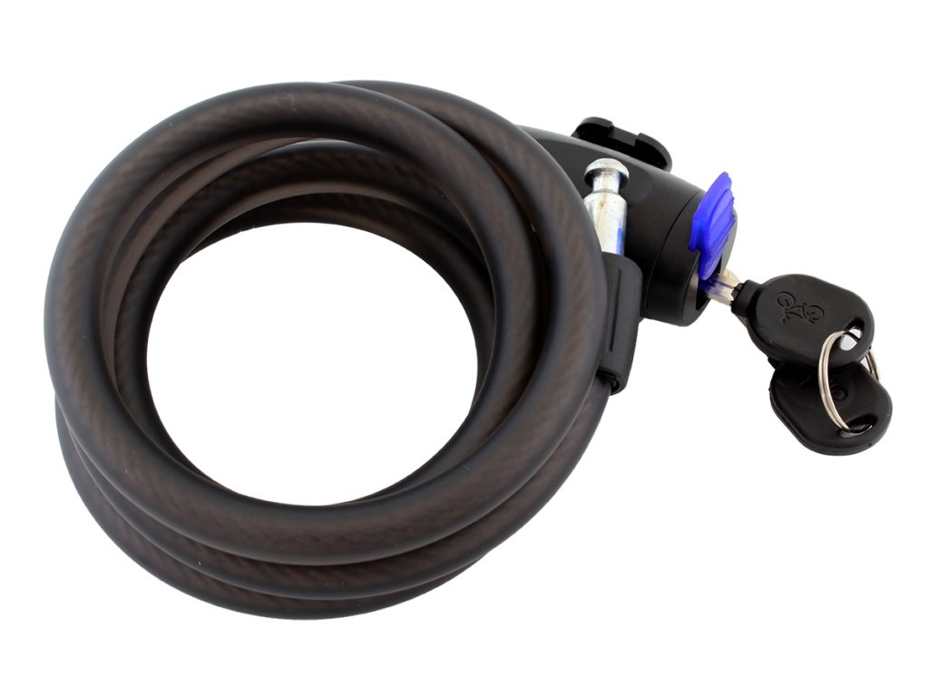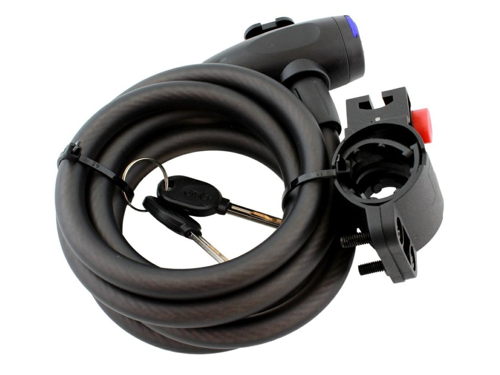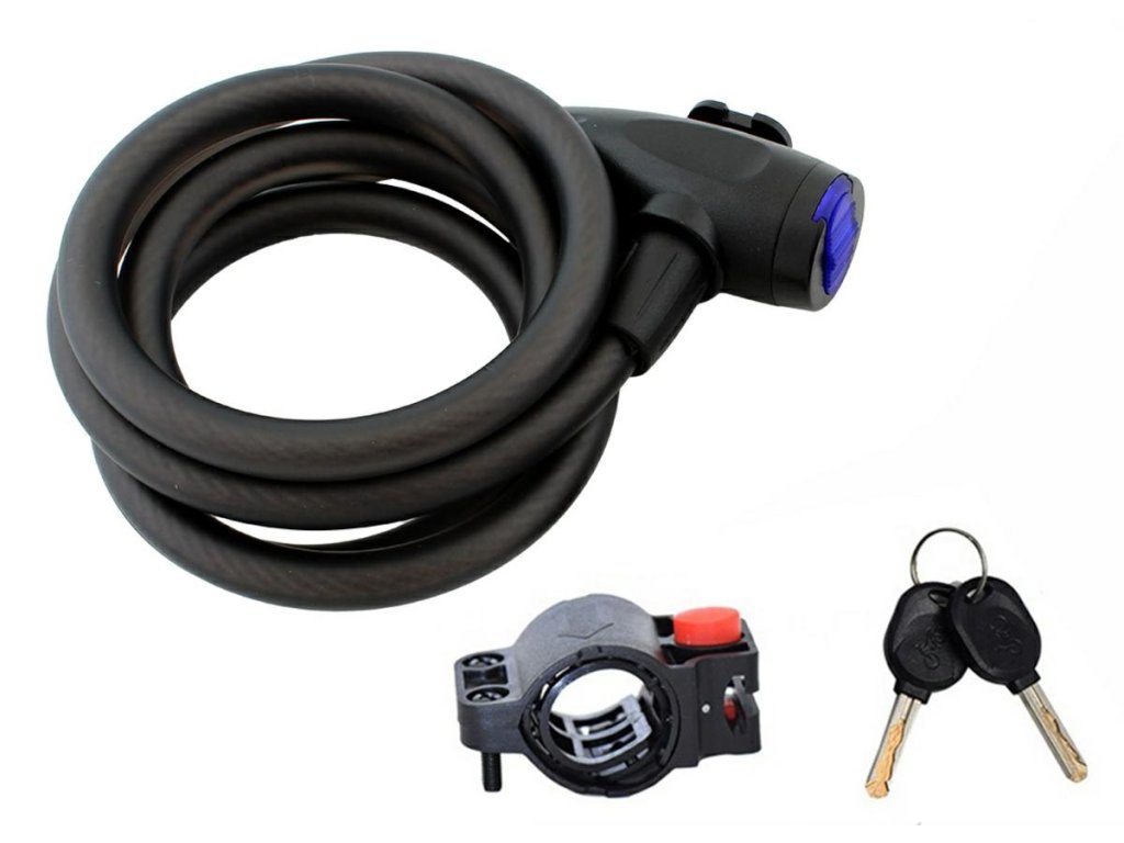 Zámek na kolo/motocykl v podobě ocelového lana. Perfektní pro zabezpečení dvoukolek (motocyklů, jízdních kol) proti krádeži. Tvrzený ocelový řetěz se silným nylonovým opletem účinně zabraňuje neoprávněnému použití kola. Pevný zámek chrání řetízek proti otevření nesprávným klíčem. Zámek má přídavný kryt na ochranu před nečistotami.