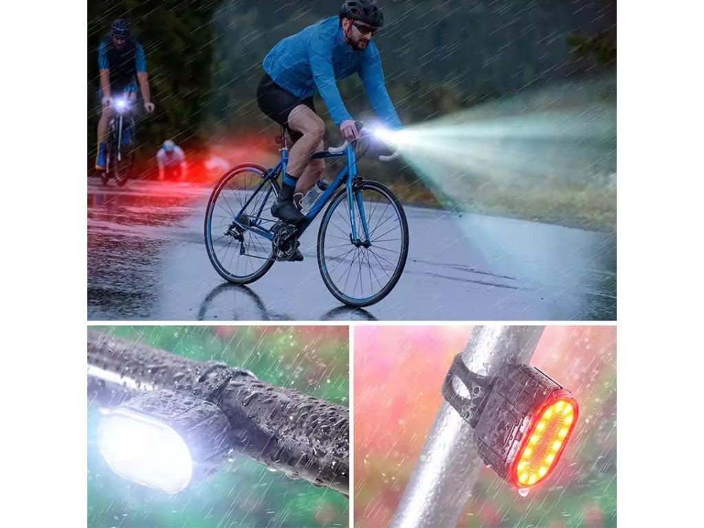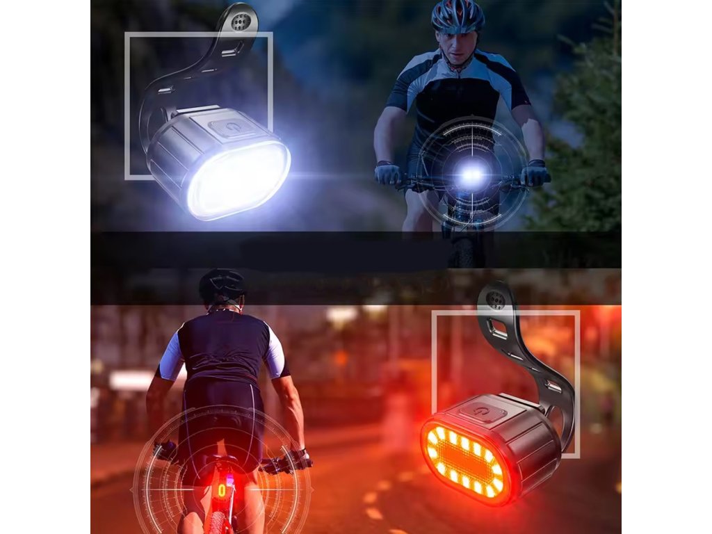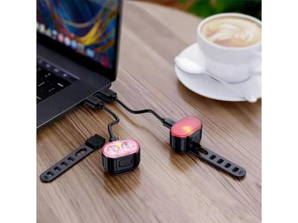 Sada osvětlení jízdního kola sestávající z přední a zadní svítilny. Využívá energeticky úspornou LED technologii, která nás navíc činí viditelnějšími po setmění. Použití vestavěných baterií a přiložených USB nabíjecích kabelů zaručuje bezproblémové používání bez nutnosti neustálé výměny baterií. Pohodlné, univerzální rukojeti (háky) zajišťují bezproblémovou montáž a demontáž každé ze svítilen.