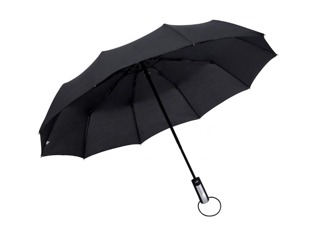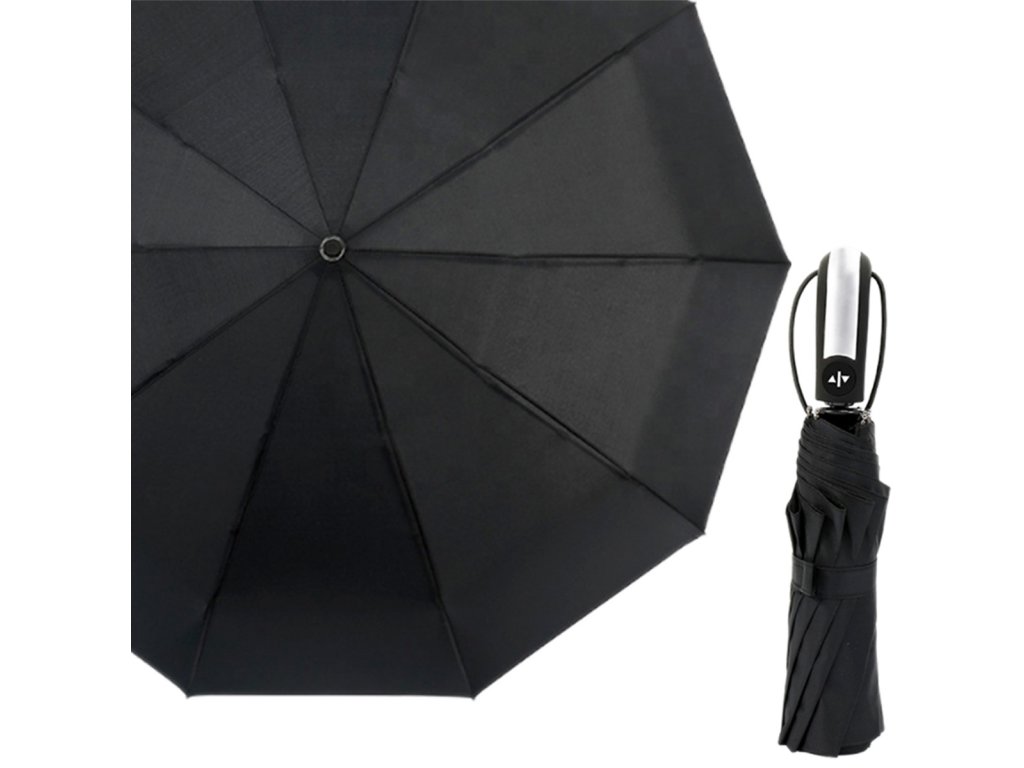 Skládací automatický deštník vás účinně ochrání před větrem a deštěm. Velmi pevná konstrukce, odolná proti silným poryvům větru díky vybavení až 10 pevnými rameny. Deštník je vyroben z voděodolné tkaniny. Pohodlná, profilovaná rukojeť s vyhrazeným tlačítkem pro otevírání a zavírání stříšky. Sada obsahuje přídavný obal pro uložení deštníku.