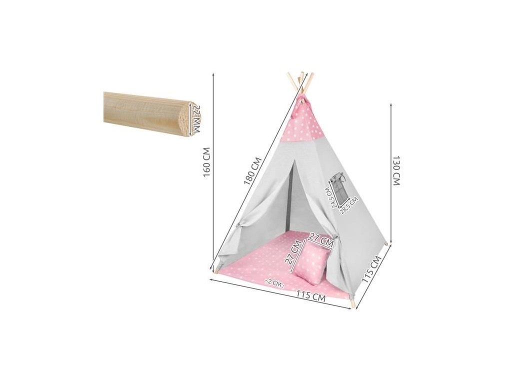 Stan ve tvaru teepee. Vyrobeno z vysoce kvalitní 100% bavlny, rám z bukového dřeva.