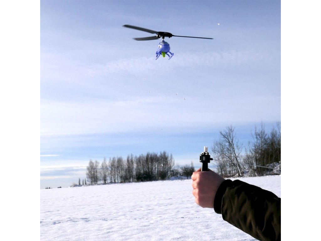 Vrtule se vloží do vrchní části helikoptéry a nasadí se celé tělo na držadlo tak, aby se závit zatočil do sebe. Následně se prudce zatáhne za šňůru a helikoptéra vzlétne. Nechte děti používat jejich představivost!