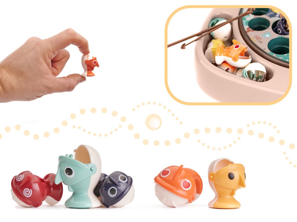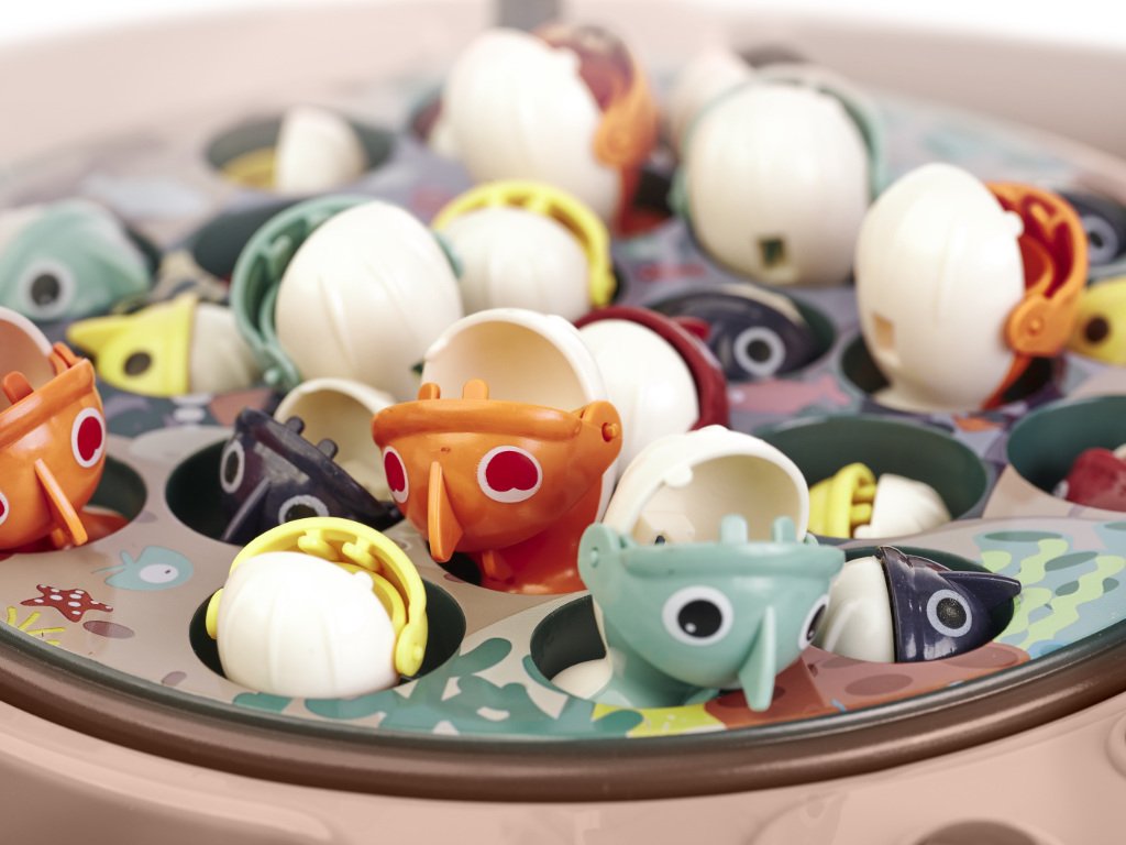 Všechny rybky by měly být umístěny "ve vodě" (na základně). Základna s rybkami se po spuštění začne otáčet a rybky budou náhodně otevírat ústa. Hráč musí vystihnou ten pravý moment a rybku chytit. Vítězem se stává hráč, který chytí více ryb. Hra je určena pro 1-2 hráče a je vhodná pro děti od 3 let!