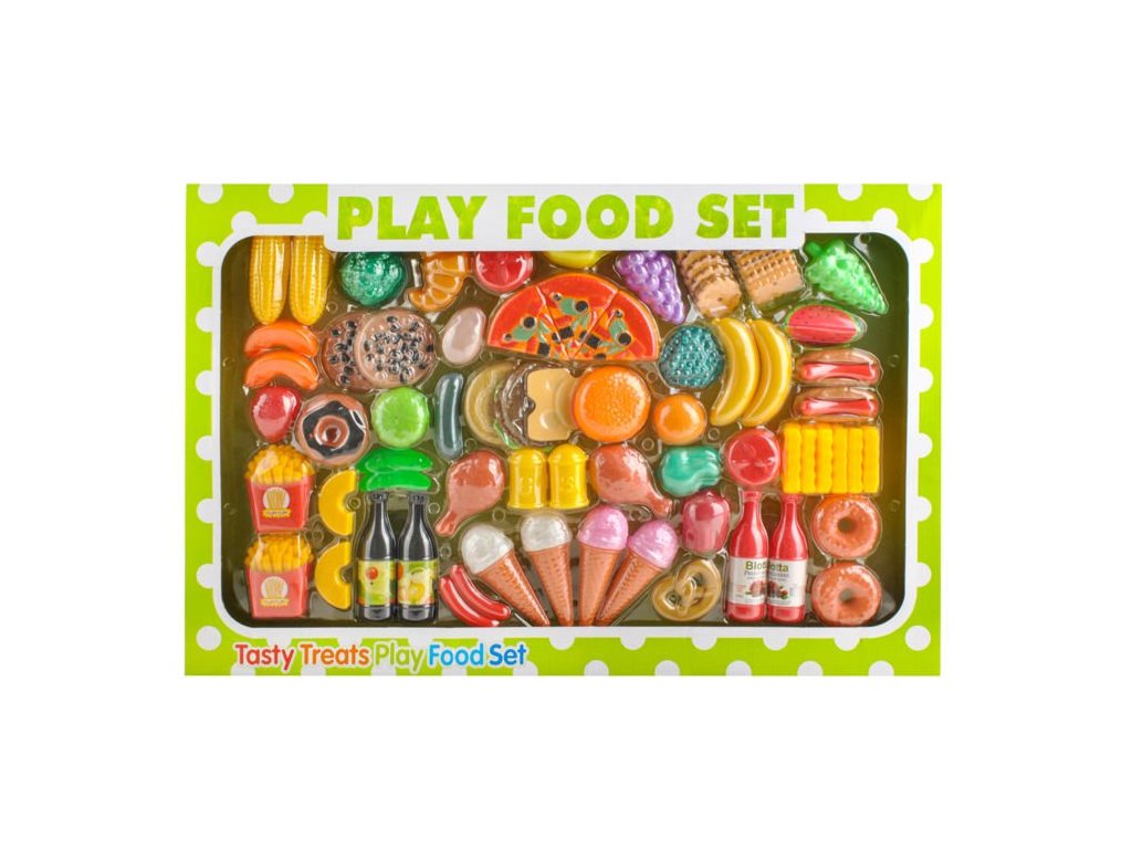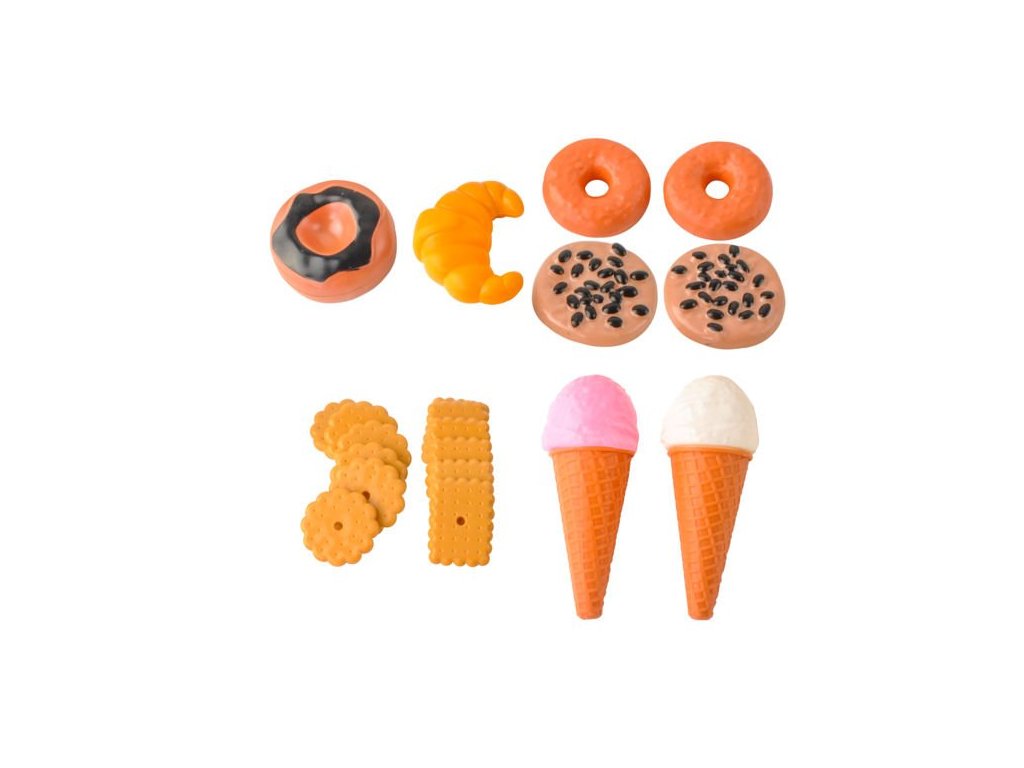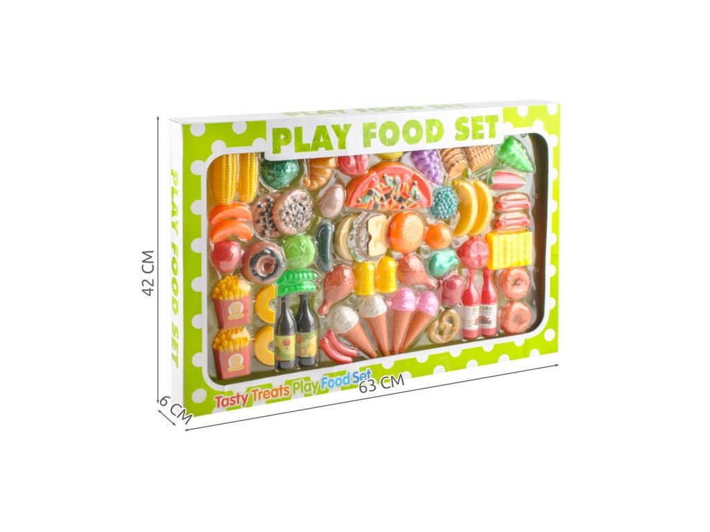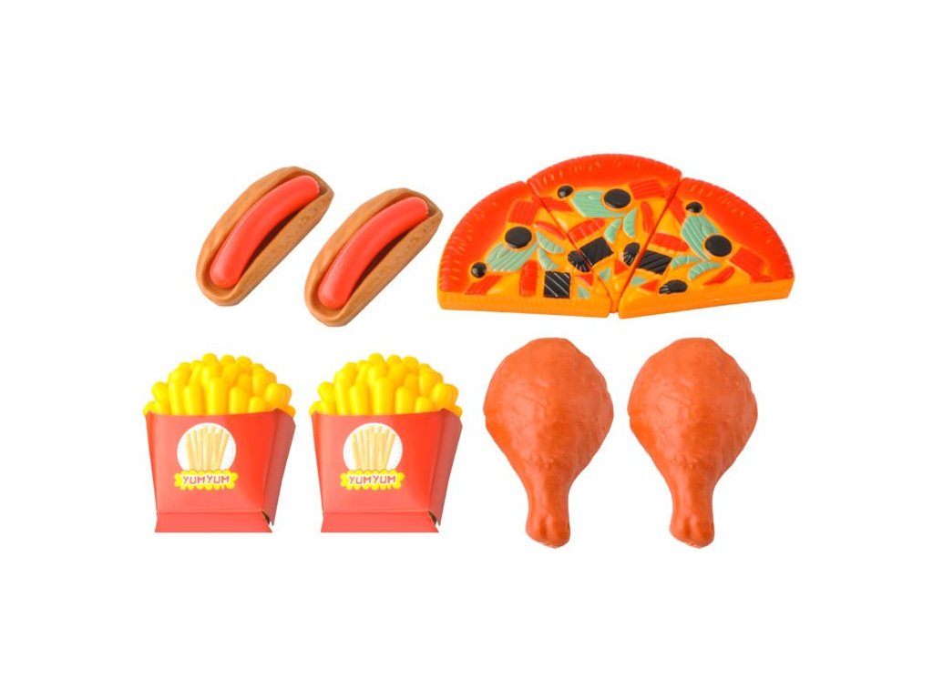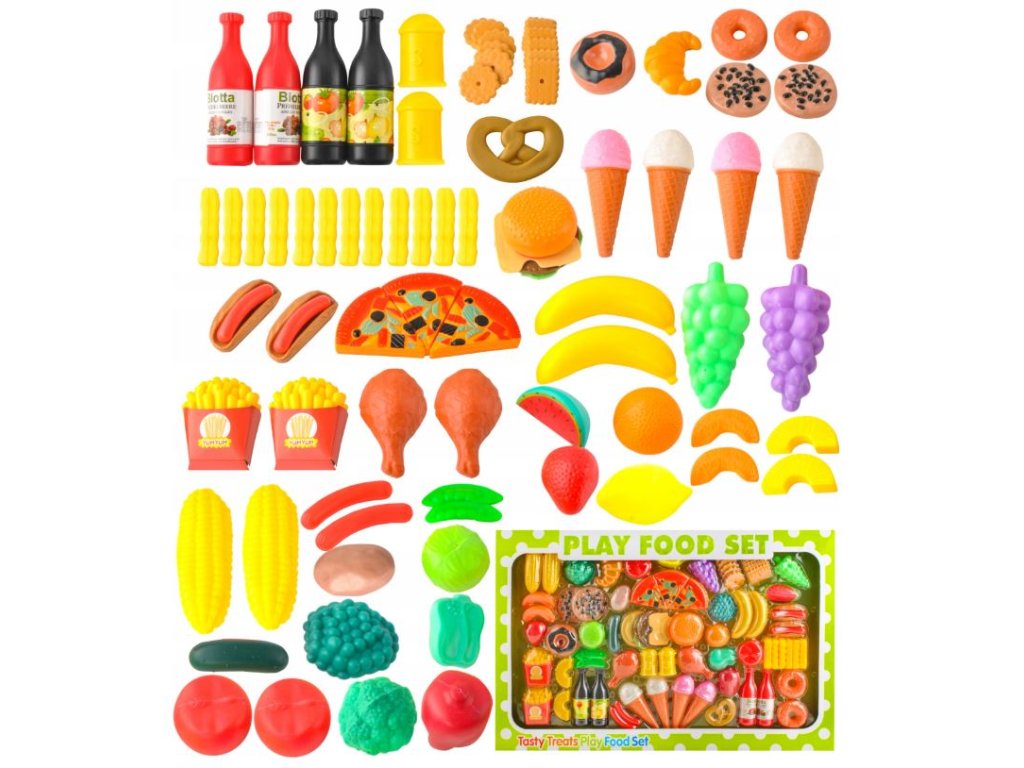 - 90 prvků - mini potravinářské výrobky (ovoce, zelenina, chléb, zmrzlina, hranolky, pizza, párky v rohlíku, kuře, atd.)