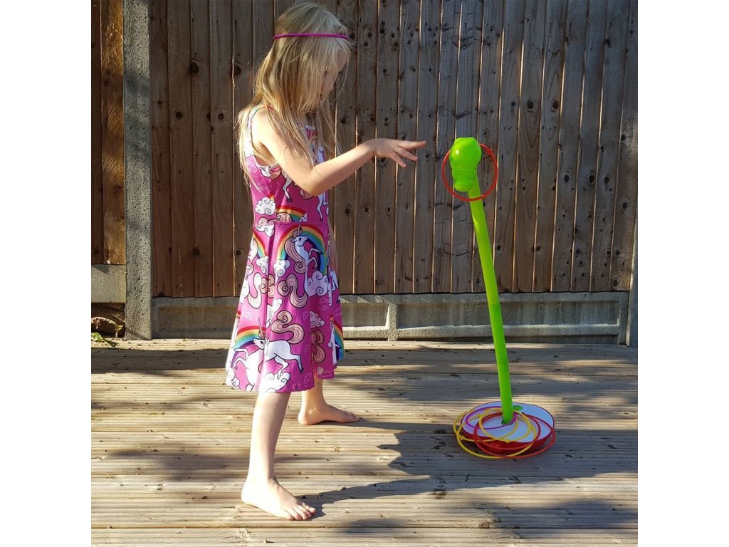 Tančící housenka je pestrobarevná hračka, kterou si ihned oblíbí holky i kluci. Jedná se o dobře známou hru založenou na principu házení kruhů, tato verze je však vylepšená o pohybující se základnu, kterou představuje právě tančící housenka. Dva nebo tři hráči házejí kruhy a snaží se trefit tak, aby kruh padl kolem housenky. Jedná se o velmi zábavnou hru pro celou rodinu, při které si nejen děti rozšíří schopnosti odhadu, postřehu a zručnosti.