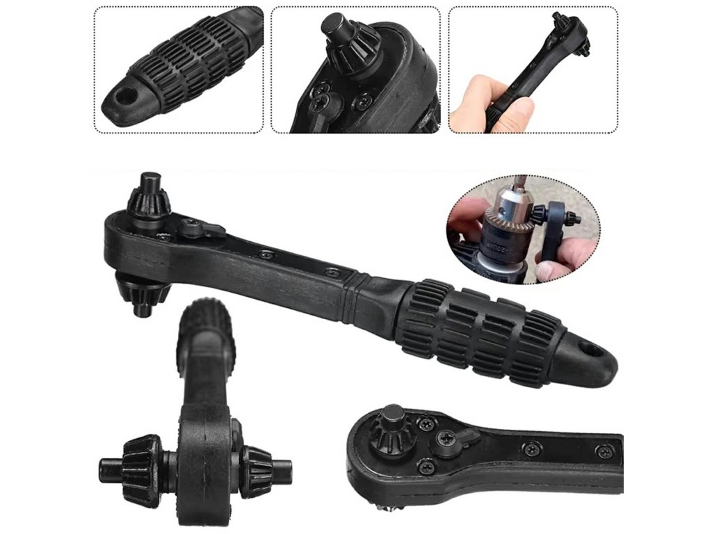 Univerzální klíč pro vrtací sklíčidlo. Vybaveno dvojitou hlavou se dvěma různými kolíky. Určeno pro tříčelisťová vrtací sklíčidla. Pevná konstrukce zajistí dlouhé a bezproblémové používání.