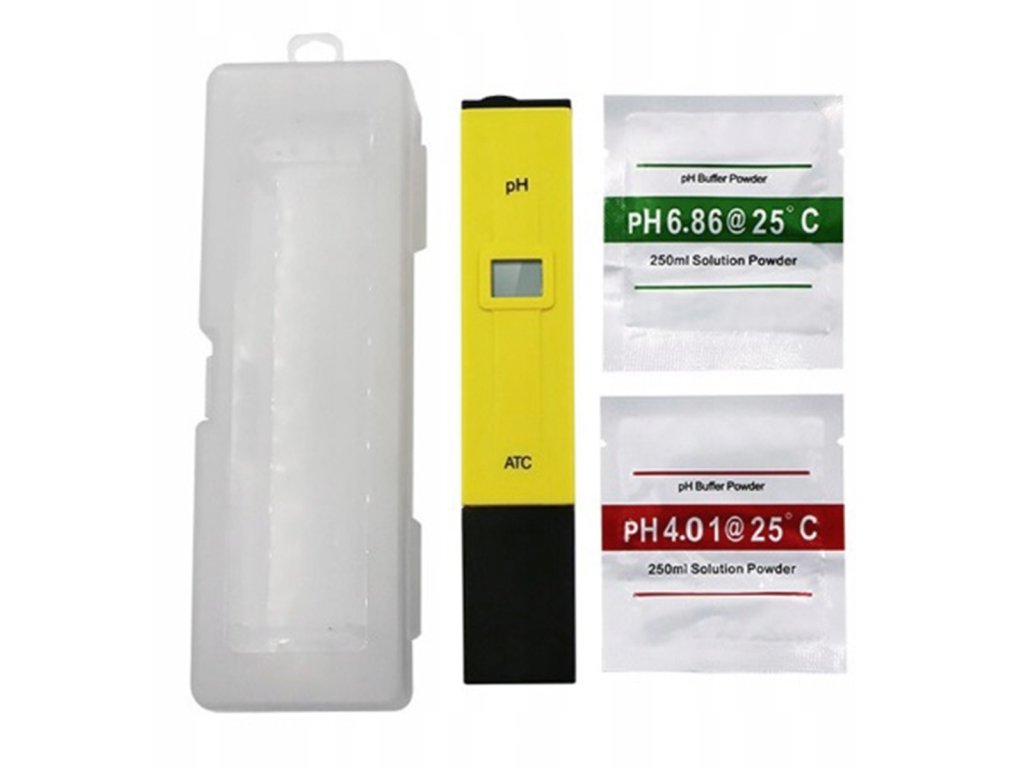 Elektronický tester kyselosti vody (pH) s ATC (kompenzací teploty kapaliny během měření). Vybaven přehledným LCD displejem a tlačítky pro napájení a kalibraci. Praktický ochranný kryt také indikuje úroveň ponoření testeru. Funkce automatického vypnutí šetří životnost baterie. Přístroj se velmi snadno používá (stačí jej ponořit do vody po rysku a odečíst hodnotu na displeji). Sada obsahuje sáčky pro přípravu standardního roztoku (pro usnadnění kalibrace testeru).