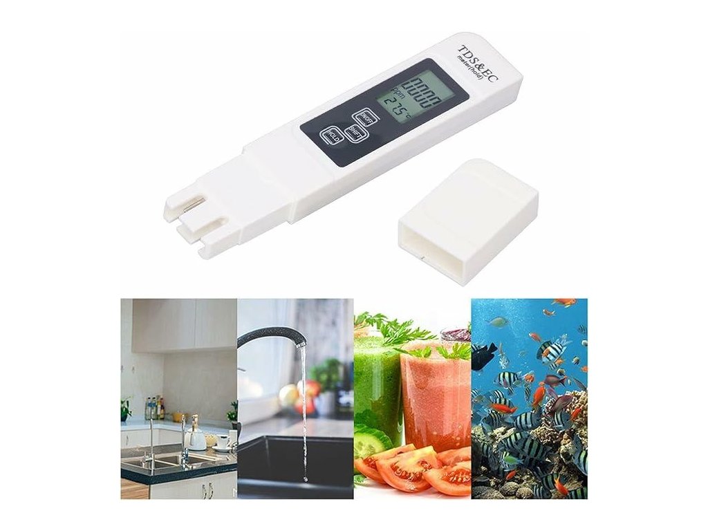 Digitální tester kvality vody je praktický nástroj pro každodenní použití. Kombinuje tři funkce: měření TDS (celkového množství rozpuštěných látek), EC (elektrické vodivosti) a teploty. Velký podsvícený LCD displej umožňuje rychlé a snadné odečítání dat. Je vhodný pro domácí použití, zahradničení, akvária, laboratoře a pro sledování kvality vody z filtrů, studní nebo městských vodovodů.