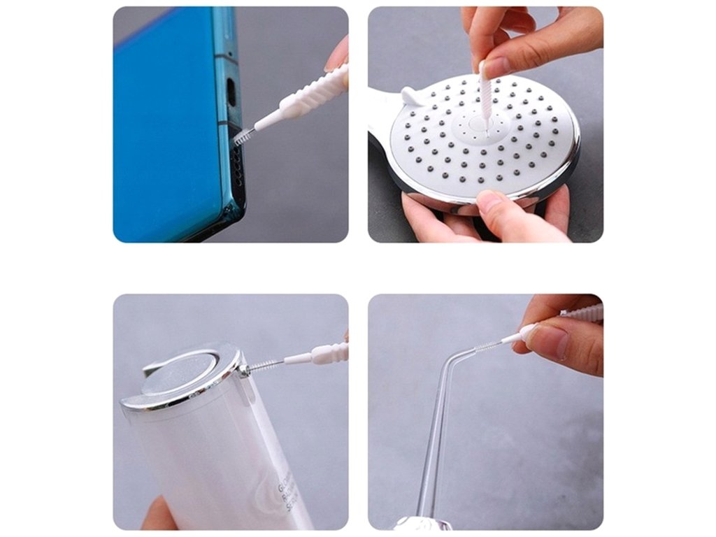 Sada 10 čisticích kartáčků na čištění trysek sprchových hlavic. Skvěle se hodí i na jiná těžko dostupná místa (jako jsou zásuvky a porty v elektronických zařízeních nebo malých domácích spotřebičích). Kartáče mají pohodlnou plastovou rukojeť a čisticí tyčinky, které úspěšně odstraňují vodní kámen a další odolné nečistoty.