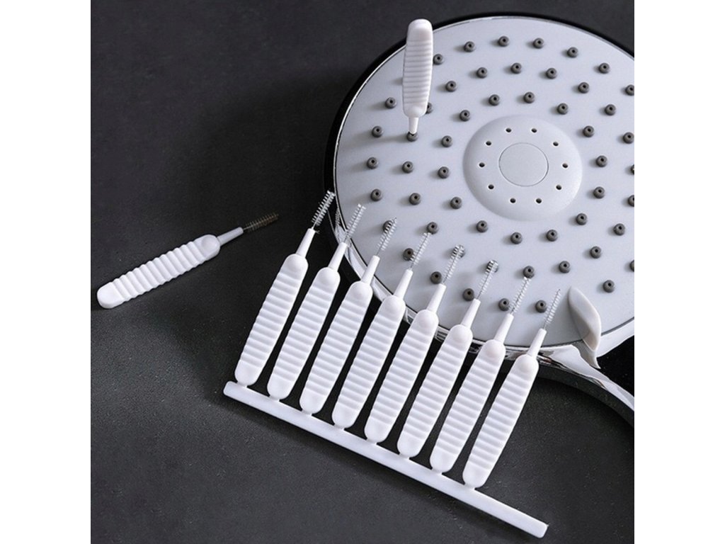 - Sada 10 čisticích kartáčků na čištění trysek sprchových hlavic.