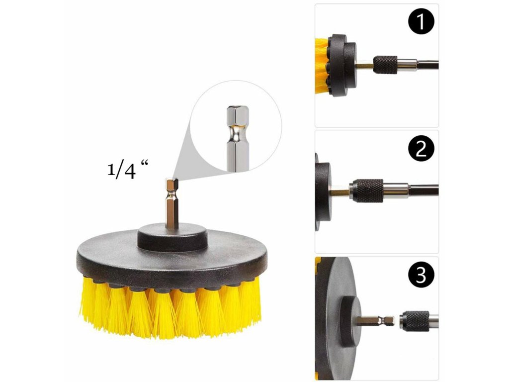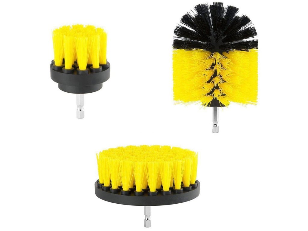 Sada tří čistících kartáčků ve formě nástavce na vrtačku. Uzpůsobeno pro práci v amatérských i profesionálních podmínkách, mimořádně užitečné doma i v domácí dílně. Jsou přizpůsobeny k čištění různých povrchů pomocí vrtačky / šroubováku. Husté nylonové štětiny a kovové rukojeti zajišťují dlouhotrvající a bezproblémové používání nástroje.