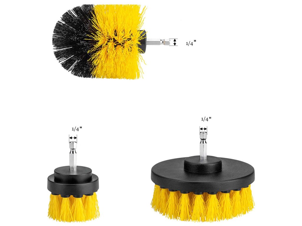 - Sada 3 čisticích kartáčků určených pro vrtačky a šroubováky se standardním závitem 1/4''.