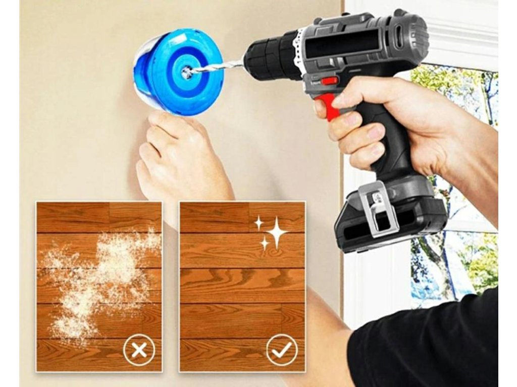 - Velmi snadné použití - stačí vložit vrták otvorem uvnitř sběrače prachu.