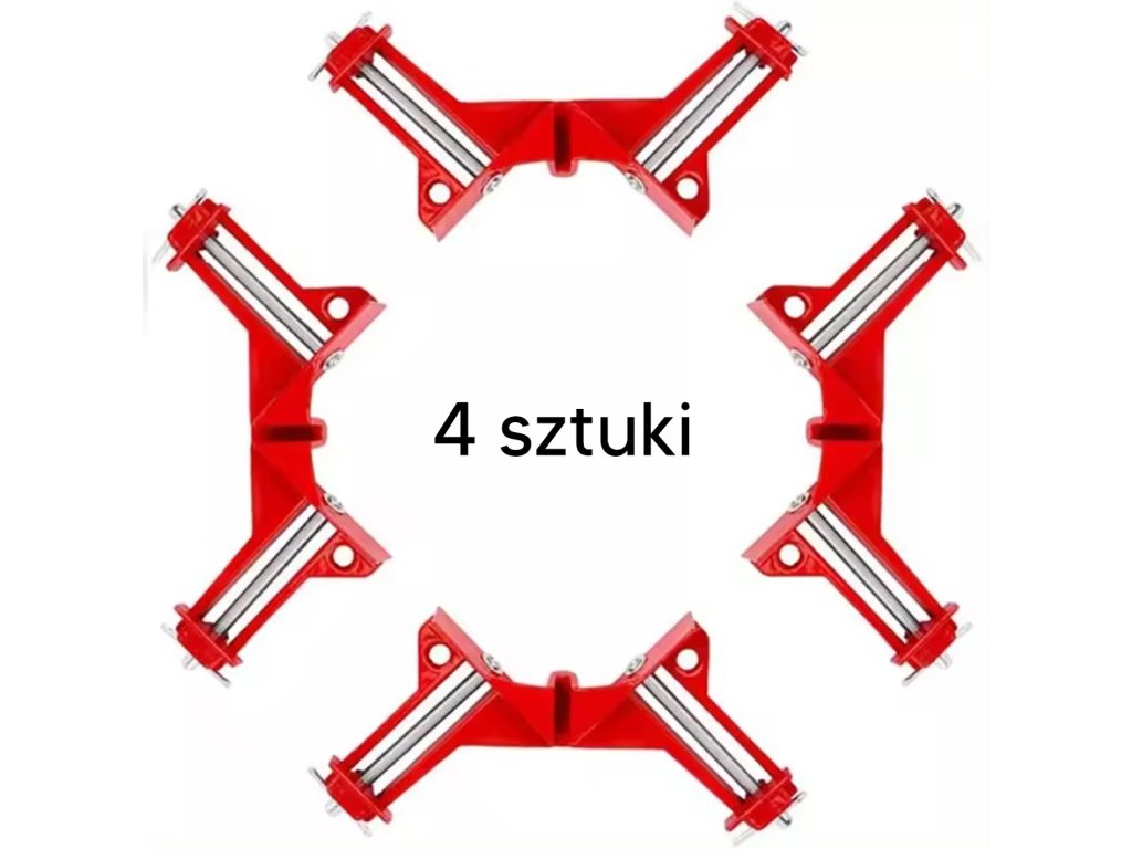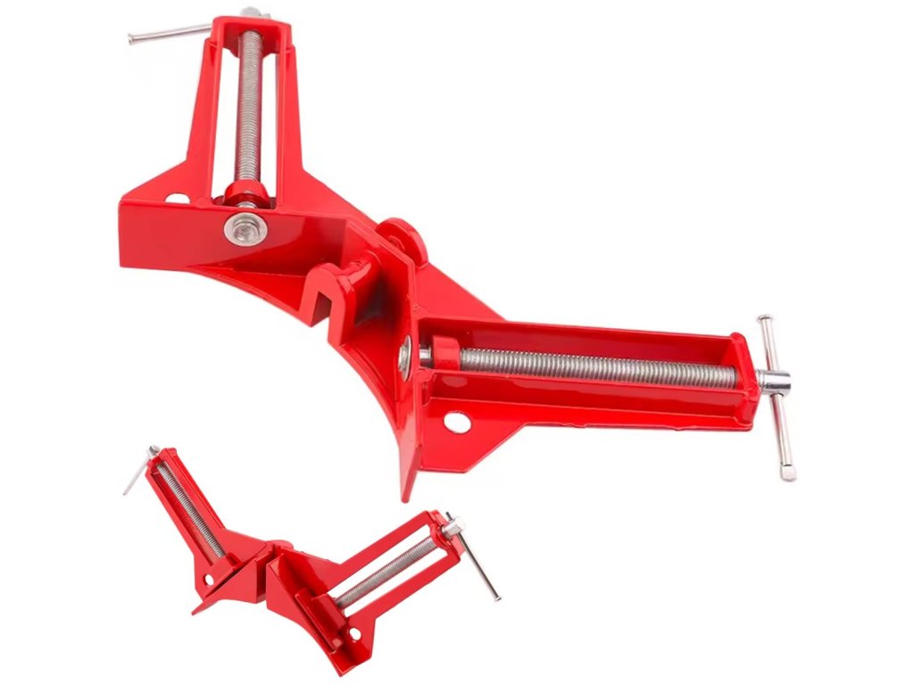 Truhlářská úhlová svorka - sada 4 ks. Nepostradatelný při práci a kutilství se dřevem. Rozhodně usnadňuje montáž dřevěných prvků a hmoždinkových spojů. Vyrobeno z pevné kovové slitiny, s pravoúhlými čelistmi (90 stupňů). Vybaveno dvěma přítlačnými šrouby na obou stranách.