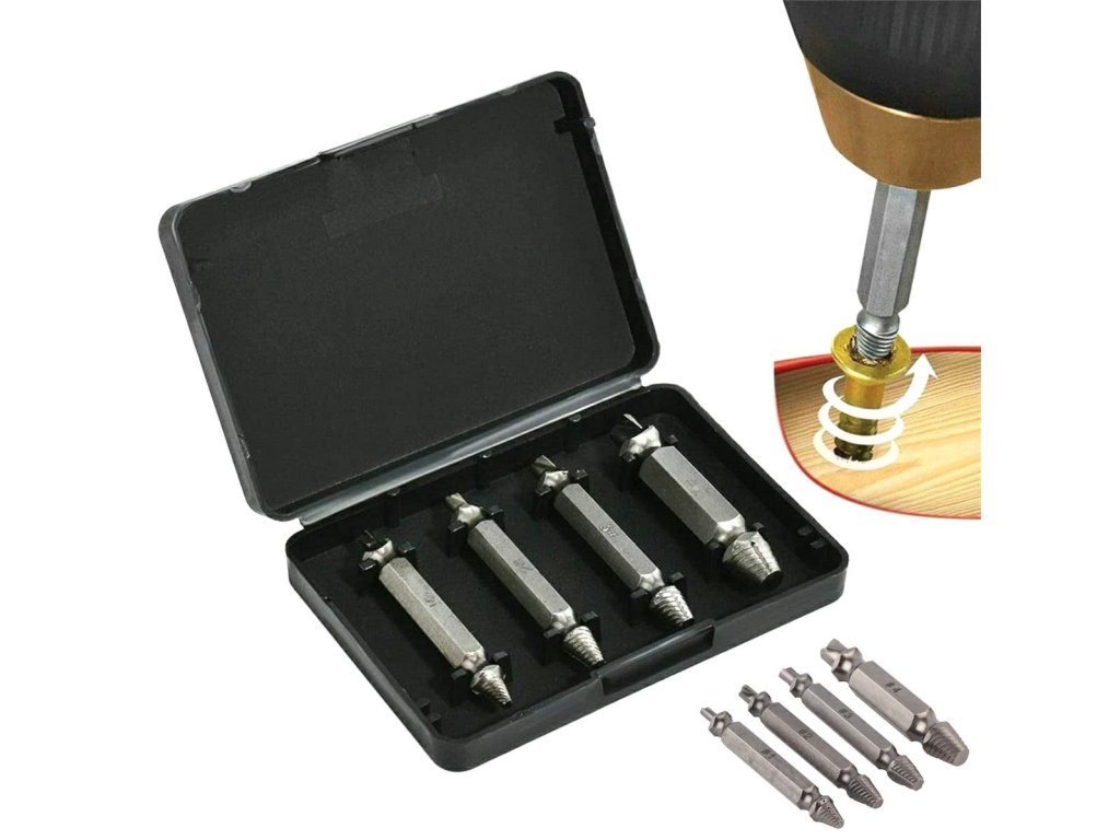 Sada 4 vytahovačů šroubů různých velikostí, určených k odstraňování zlomených šroubů a svorníků. Nástroje jsou vyrobeny z masivní nástrojové oceli, která odolá velmi vysokému namáhání! Sada je mimořádně všestranná, skládá se ze 4 různých velikostí vytahovačů, díky nimž můžete odstranit poškozené nebo zadřené šrouby nejoblíbenějších velikostí! Celé je zabaleno v estetické plastové krabičce!