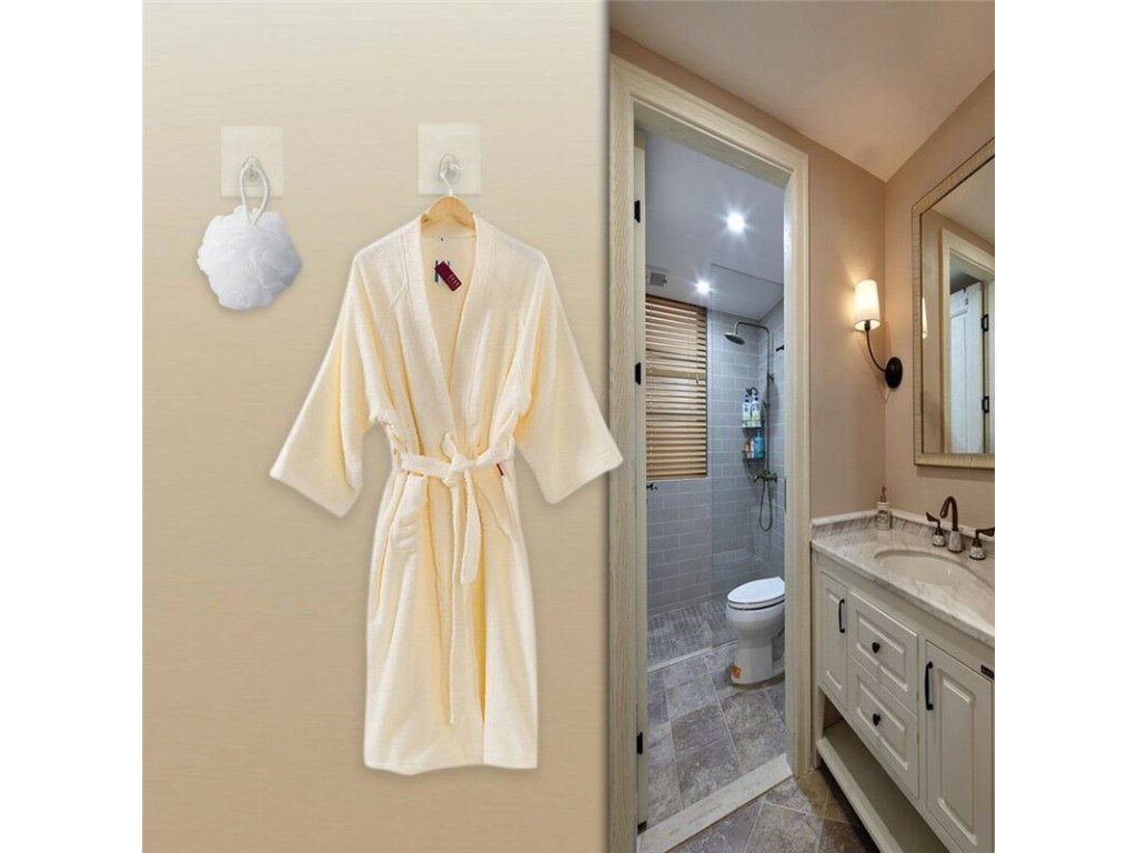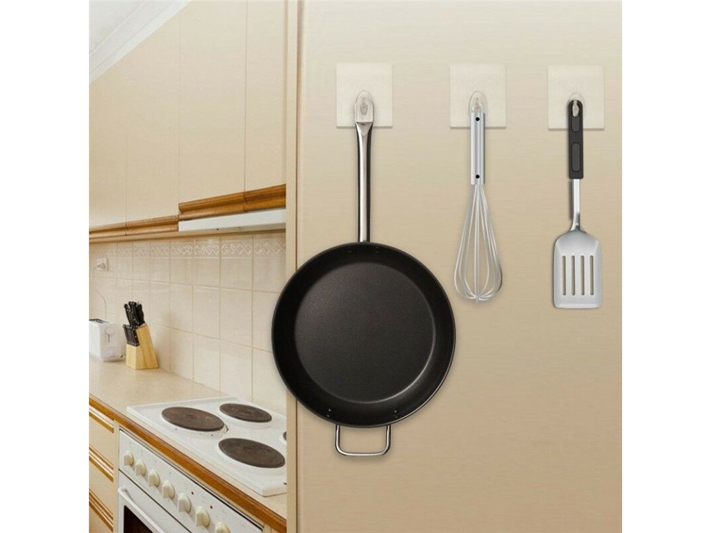 Při aplikaci nemusíte používat lepidla ani jiná nářadí. Háček zvládne udržet kuchyňské náčiní jako jsou vařečky, utěrky či koupelnové doplňky jako houbu na mytí i lehký župan.