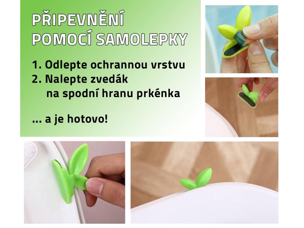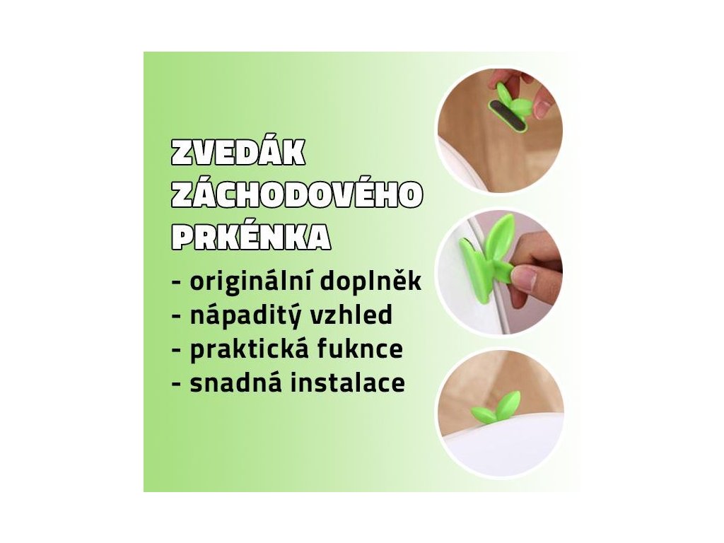 Nyní se již nemusíte dotýkat přímo záchodového prkénka v okamžiku, kdy jej budete chtít zvednout. Zvedněte prkénko jednoduše a pohodlně pomocí tohoto designového zvedáku. Zvedák ve tvaru zeleného lístku je nejen praktický, ale také skvěle vypadá.