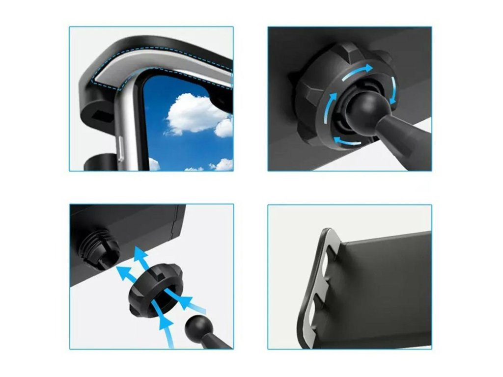 APT DRŽÁK TELEFONU NA OPĚRKU HLAVYUniverzální držák do auta pro mobilní zařízení. Montáž na opěrku hlavy sedadla zajišťuje dostatečný komfort při používání telefonu pro cestující vzadu. Možnost plně nastavit úhel telefonu v 360stupňové rovině umožňuje umístit jej tak, aby byl displej dokonale viditelný. Pohodlné nastavitelné rameno dále zvyšuje komfort používání. Kompatibilní se všemi standardními smartphony a tablety.
