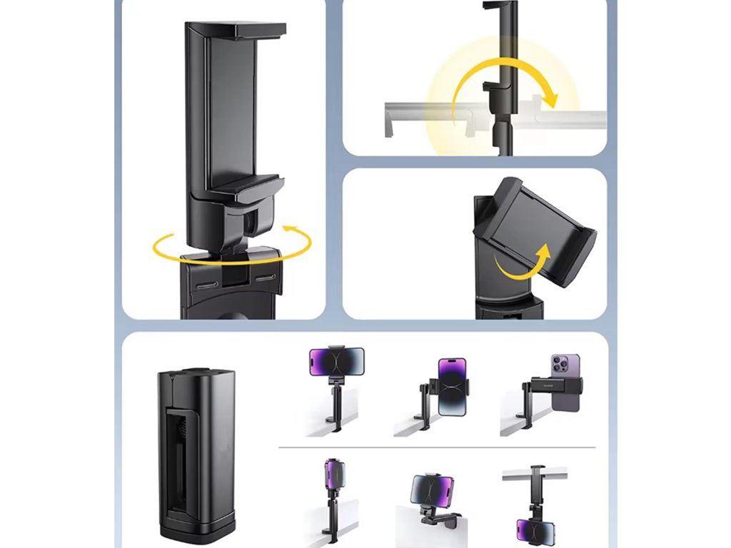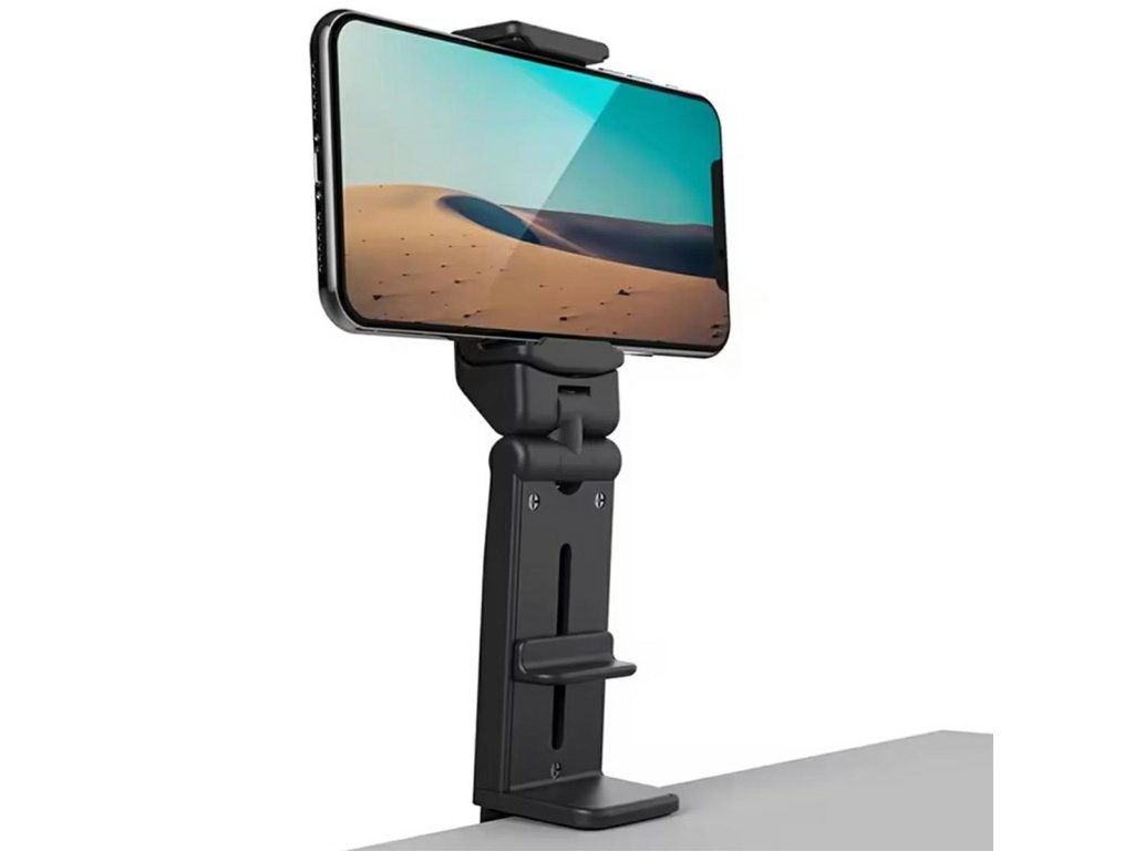 Univerzální cestovní držák pro mobilní zařízení. Instalace na jakýkoli rovný povrch pomocí klipu zajišťuje pohodlné ovládání telefonu na cestách. Možnost plně nastavit úhel náklonu telefonu v rovině 360 stupňů umožňuje jeho umístění tak, aby byl displej dokonale viditelný. Pohodlné, nastavitelné rameno (výškově) navíc zvyšuje komfort používání. Kompatibilní se všemi standardními smartphony. Možnost složení zajišťuje pohodlnou přepravu při nepoužívání rukojeti.Vlastnosti a specifikace produktu: