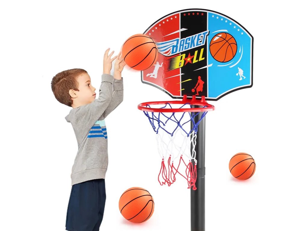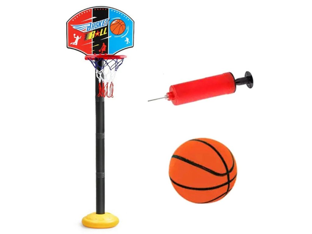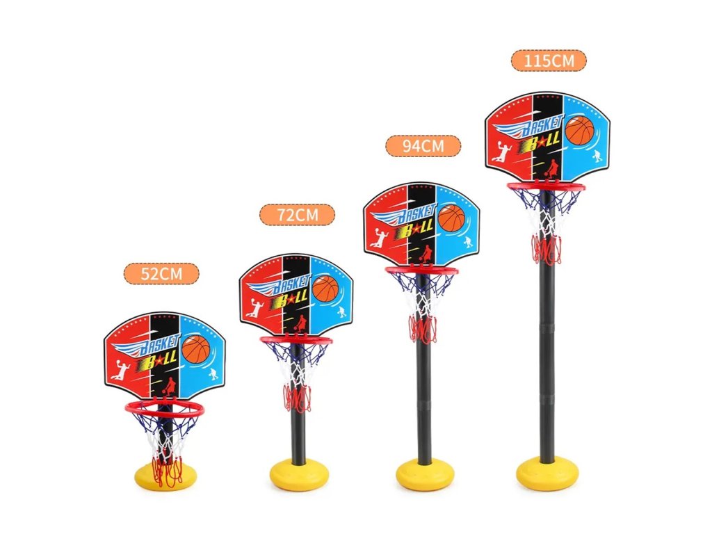 Skvělá hračka pro aktivní lidi - kompletní mini basketbalový set. Ideální pro hraní venku. Sada obsahuje veškeré potřebné příslušenství jako je míč a kuličková pumpa s jehlou. Deska s košem je upevněna na svislé podložce vysoké 115 cm. Výšku stojanu lze nastavit ve 4 úrovních od 52 cm do 115 cm. Velmi jednoduchá montáž pomocí přiložených komponentů.
