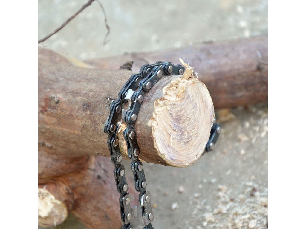 Ruční řetězová pila. Ideální pro turistiku a přežití. Velmi lehký a skladný, takže ho budete mít v případě nouze vždy u sebe. Pohodlné rukojeti usnadňují řezání. Robustní řetěz je vybaven 11 zuby, které lze snadno naostřit.