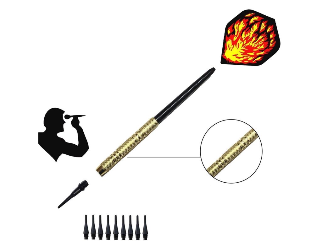 Kompletní sada šipek - vybavená 12 šipkami, 100 náhradními hroty a 42 peříčky. Pevnost a estetika zpracování umožňují velkou radost z hraní. Různé vzory peří vám umožní zpestřit vaši hru. Pevně vyrobené šipky zaručují vysokou stabilitu směru letu. Zajímavý tip na dárek pro všechny milovníky šipek.Vlastnosti produktu: