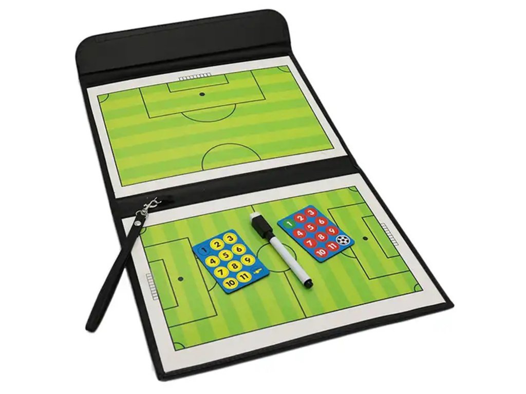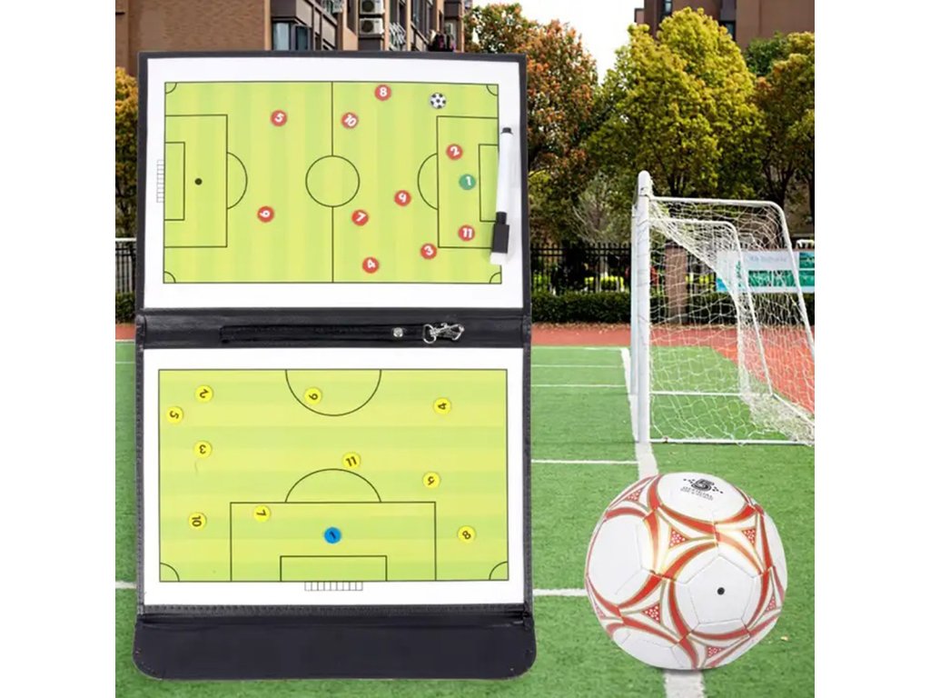 Taktická deska používaná pro fotbalový trénink. Pohodlná forma ve tvaru složky z ekokůže se zapínáním na suchý zip. Vybaveno dvěma magnetickými tabulemi představujícími hrací pole. Sada obsahuje také stíratelný popisovač a 24 magnetů. Prkno je vyrobeno z voděodolného materiálu, který umožňuje trénovat i v náročných povětrnostních podmínkách. Přídavný věšák umožňuje zavěsit složku na háček.