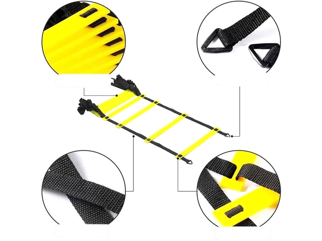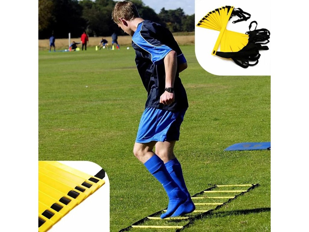 Sada na mini fotbal - koordinační tréninkový žebřík. Úžasně rozvíjí motorickou koordinaci. Usnadňuje nácvik co nejkratšího kontaktu se zemí, což je ve fotbale klíčové. Žebřík umožňuje procvičovat fotbalové dovednosti. Možnost úplného složení a speciální pouzdro značně usnadňuje přepravu. Žebřík má nastavitelnou rozteč příček, přizpůsobující se úrovni uživatele. Pro rodiče skvělý způsob, jak trávit volný čas se svými dětmi.