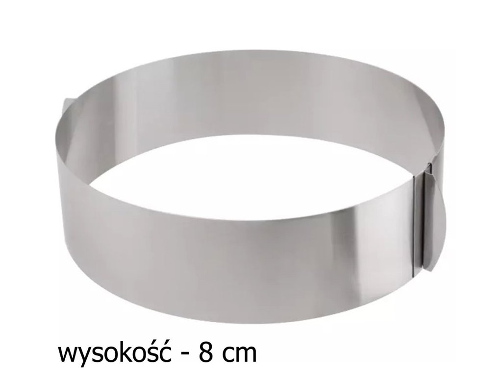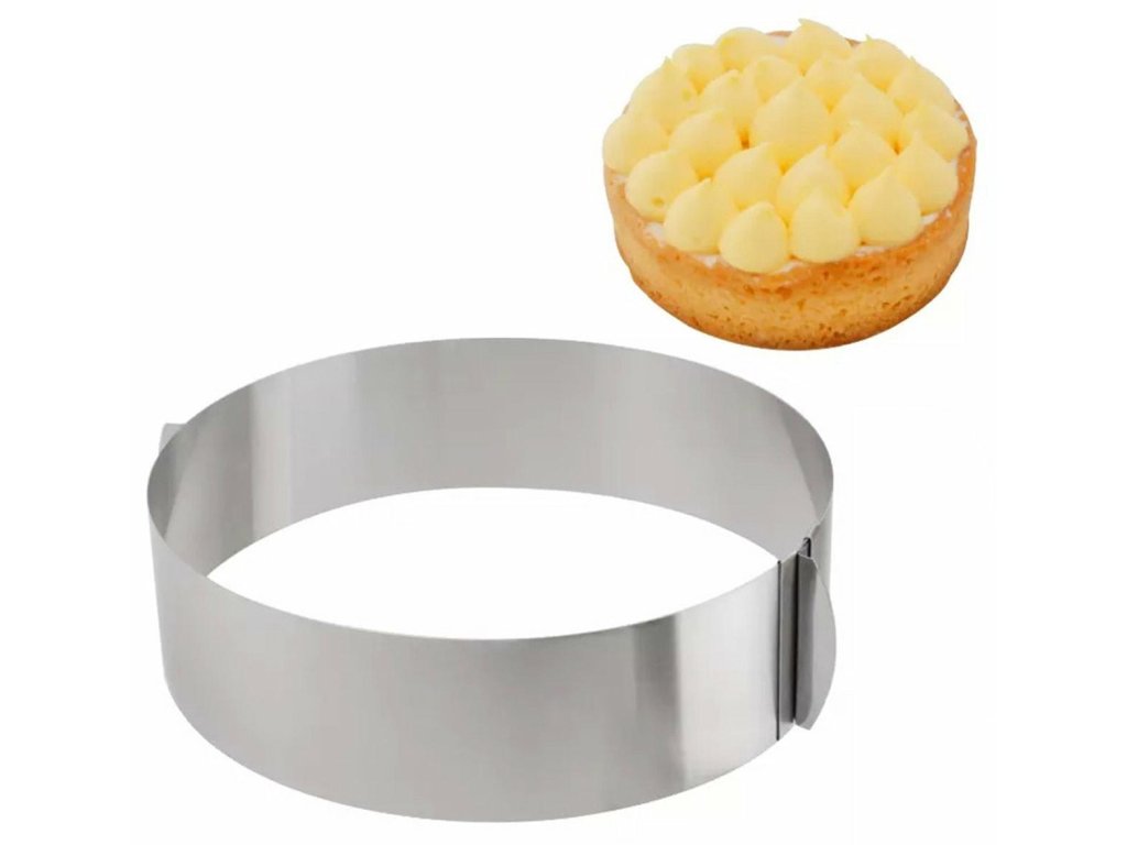Kovový pásek na tvarování dortu. Vybaveno možností nastavení průměru od 16 do 30 cm. Použití speciální slitiny umožňuje rychlé zahřátí formy a udržení tepla po dlouhou dobu. Pevný okraj zabraňuje vytékání přísad do těsta z formy. Pevná madla umožňují snadné otevírání a zavírání forem. Vyrobeno z nerezové oceli, která zajišťuje dlouhé a bezproblémové používání.