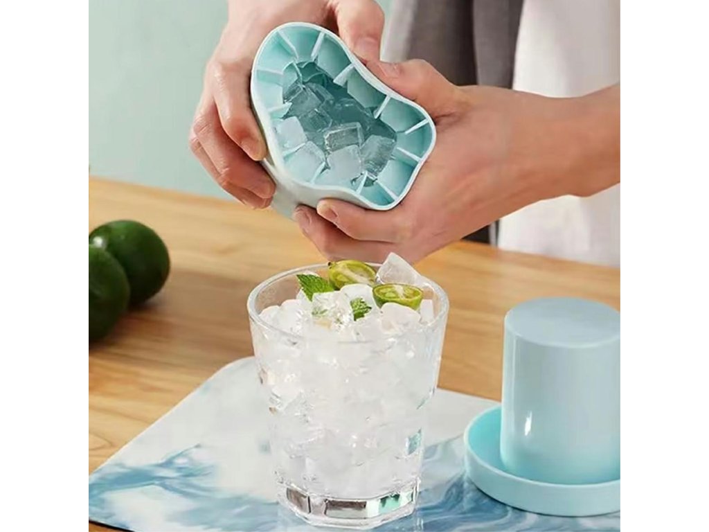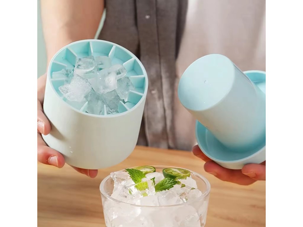 Silikonový kbelík, výrobník ledu vybavený až 60 formami na výrobu kostek ledu. Díky tomu je příprava studených nápojů doma mnohem jednodušší a rychlejší. Výrobek lze bezpečně mýt v myčce na nádobí a skladovat v mrazáku. Kompaktní provedení nezabere mnoho místa a přídavné víko chrání obsah kbelíku.