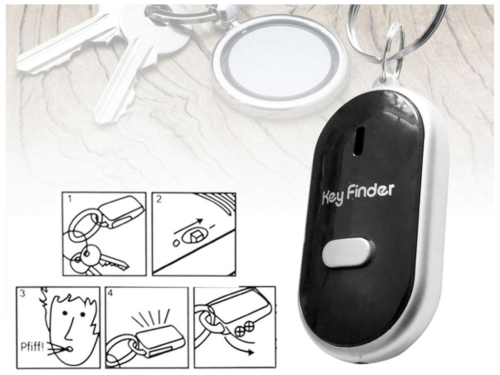 Klíčenkamalých rozměrů nám pomůže najít klíče. Reaguje na naše pískání. Když zapískáme, kroužek na klíče se rozsvítí červeně a hlasitě pípne. Má světlo, díky kterému můžeme osvětlit klíčovou dírku.
