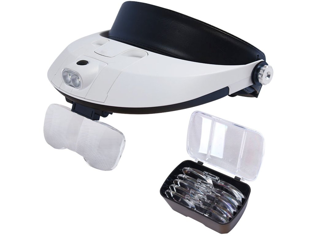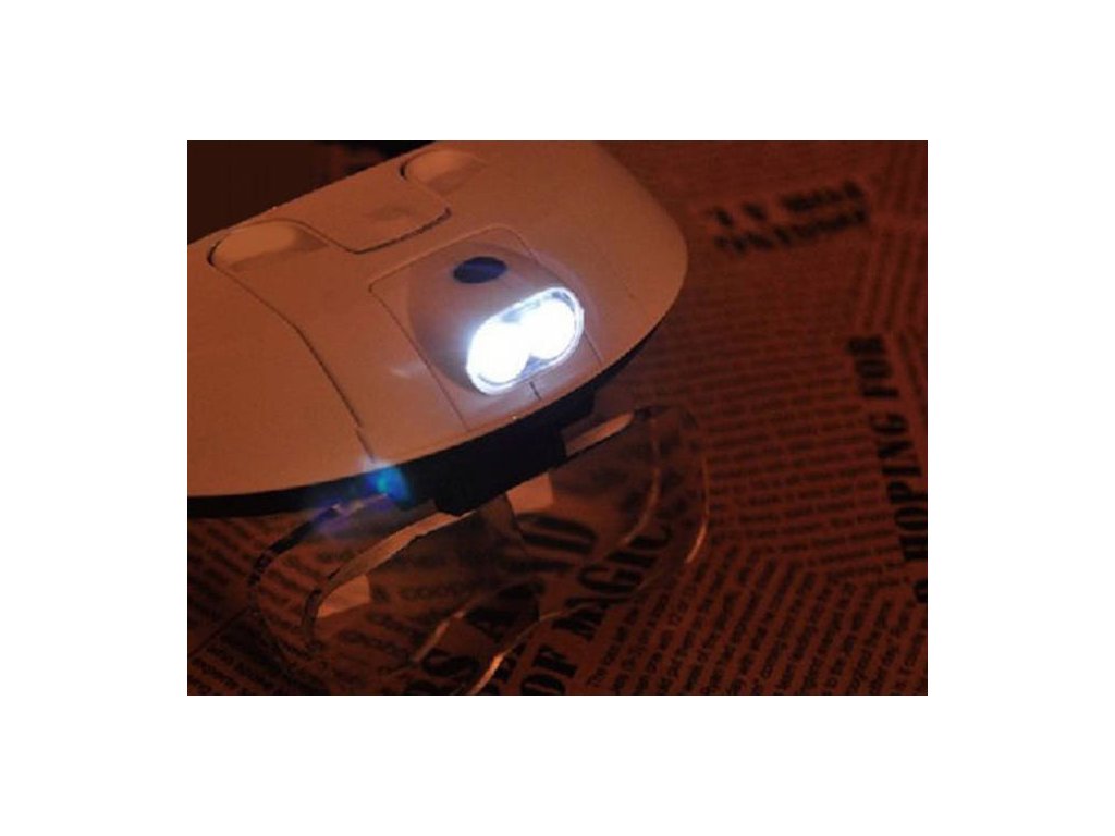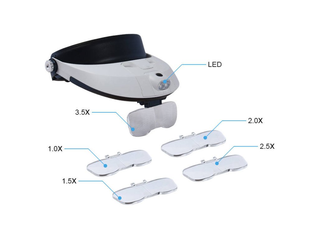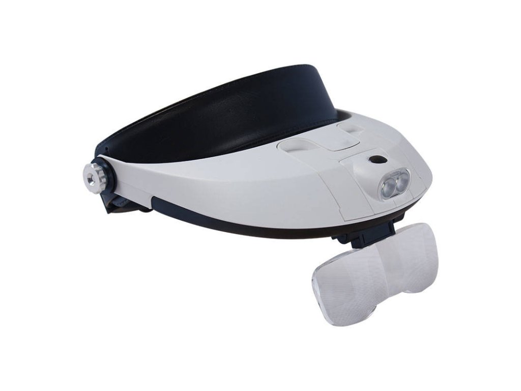 LED diody lze nastavit v úhlu podle potřeby. Celý mechanismus je založen v podobě hledí na hlavě. Hledí nebo lze naklápět nahoru nebo dolů. Lupa má univerzální velikost, protože je vybavena popruhem, který je plně nastavitelný pomocí knoflíku. Umožňuje pracovat i při nošení korekčních brýlí.