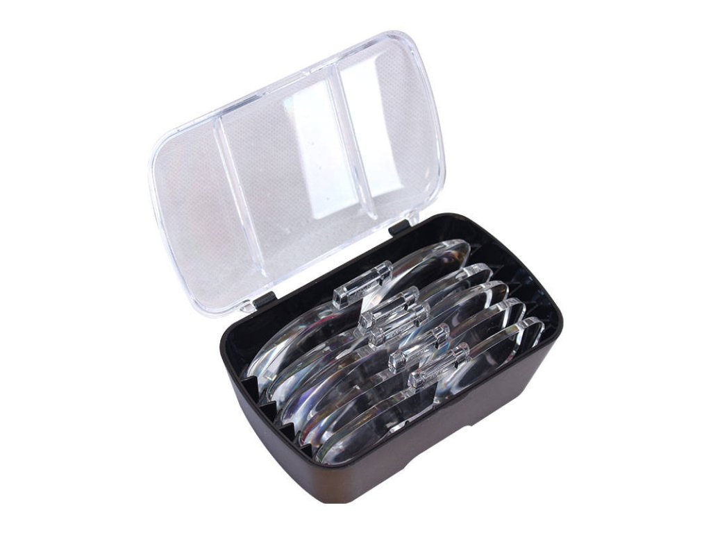 Lupa má 5 různých a vyměnitelných zvětšovacích čoček, zabalených ve speciální krabičce pro snadné skladování. Umožňuje také instalaci dvou zv ětšovacích skel, aby bylo zvětšení ještě větší.