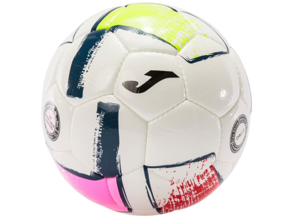 Fotbalový míč JOMA Dali II je vhodný na trénink a pro rekreační hráče. Ručně šitý míč tvořený z 32 panelů má povrch vyrobený z odolného 100% TPU a vnitřní vrstvou z EVA pěny. Díky modernímu barevnému HD potisku nabízí skvělou viditelnost na hřišti. Jeho speciální konstrukce a vnitřní butylová vzdušnice zajišťují lepší trajektorii letu. Míč je vyrobený ve 3 velikostech, díky čemuž si mohou vybrat hráči všech věkových kategorií. Upozornění: míče nafukujte vždy pouze pomocí navlhčené jehly na doporučený tlak (uvedeno na míči), jinak hrozí jeho poškození. Tabulka velikostí míče velikost obvod věk uživatele hmotnost 5 68 – 70 cm starší 12 let 410 g – 450 g 4 64 – 66 cm 8 – 12 let 350 g – 390 g 3 58 – 61 cm do 8 let 310 g – 340 gDoplňkové parametry